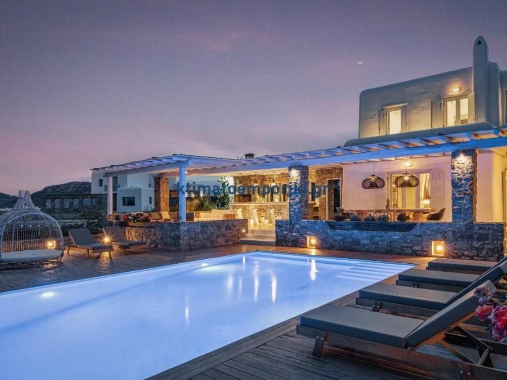 Πολυτελής βίλα με θέα στη θάλασσα προς πώληση στη Μύκονο. Βρίσκεται στο γαλήνιο βορειοανατολικό τμήμα της Μυκόνου, σε μικρή απόσταση από μερικές από τις πιο παρθένες παραλίες του νησιού, αυτή η εξαιρετική βίλα με θέα στη θάλασσα προσφέρει την τέλεια ισορροπία μεταξύ ιδιωτικότητας, πολυτέλειας και άνεσης. Χτισμένη σε ένα γενναιόδωρο οικόπεδο 2.900 τ.μ., η ίδια η βίλα εκτείνεται σε 188 τ.μ. σε δύο επίπεδα. Διαθέτει 5 υπνοδωμάτια και 5 μπάνια, σχεδιασμένα να φιλοξενήσουν έως και 12 άτομα με απόλυτη άνεση και στυλ. Μπαίνοντας στο εσωτερικό, το εσωτερικό εντυπωσιάζει αμέσως με τον συνδυασμό κυκλαδίτικης αυθεντικότητας και εξατομικευμένης κατασκευής. Οι λεπτομέρειες της οροφής ακολουθούν ένα παραδοσιακό χειροποίητο ξύλινο μοτίβο ψαροκόκαλου, ενώ τα φυσικά υλικά και οι ανοιχτοί τόνοι ενισχύουν την ευάερη, νησιώτικη αίσθηση. Το ισόγειο φιλοξενεί μια ευρύχωρη κύρια σουίτα με δικό της μπάνιο. Ένα εκλεπτυσμένο σαλόνι με ενσωματωμένους λευκούς καναπέδες συνδέεται αβίαστα με τη φωτεινή τραπεζαρία και την πλήρως εξοπλισμένη κουζίνα. Ένα επιπλέον WC εξασφαλίζει την άνεση των επισκεπτών. Προχωρώντας στον επάνω όροφο, η βίλα αποκαλύπτει δύο ακόμη υπνοδωμάτια - ένα με ιδιωτικό μπαλκόνι και πανοραμική θέα στη θάλασσα και την πισίνα, και ένα άλλο με δύο μονά κρεβάτια, ιδανικό για παιδιά ή φίλους. Κάθε δωμάτιο είναι προσεκτικά σχεδιασμένο, με μίνι μπαρ, γραφεία και γωνιές lounge που ισορροπούν την αναψυχή και τη λειτουργικότητα. Επιπλέον, δύο ξεχωριστά εξωτερικά δωμάτια επισκεπτών προσφέρουν ιδιωτική είσοδο, ατομικά μπάνια και πλήρη αυτονομία, καθιστώντας τα ιδανικά για επισκέπτες ή προσωπικό. Οι εξωτερικοί χώροι της βίλας είναι εξίσου μαγευτικοί. Μια πισίνα 50 τ.μ. με τζακούζι, ξύλινο ηλιόλουστο χώρο και σκιεροί χώροι lounge δημιουργούν ένα ειδυλλιακό περιβάλλον τόσο για χαλάρωση κατά τη διάρκεια της ημέρας όσο και για κομψές βραδινές συγκεντρώσεις. Ένας πλήρως εξοπλισμένος χώρος μπάρμπεκιου, μια τραπεζαρία σε εξωτερικό χώρο και ένα στεγασμένο μπαρ δίπλα στην πισίνα αναβαθμίζουν την ψυχαγωγική εμπειρία. Μεγάλες βεράντες με θέα στο λαμπερό Αιγαίο, ενώ περιποιημένοι κήποι περιβάλλουν το κατάλυμα, ενισχύοντας την αίσθηση του χώρου και της ηρεμίας. Υπάρχει επίσης ένας στεγασμένος χώρος στάθμευσης αρκετά μεγάλος για να φιλοξενήσει ένα ελικόπτερο. Η βίλα είναι πλήρως κλιματιζόμενη σε κάθε δωμάτιο, εξασφαλίζοντας άνεση όλο το χρόνο και περιλαμβάνει μοναδικές πινελιές όπως χειροποίητες πέργκολες, μονοπάτια κήπου και γαλήνιες τσέπες για ανάγνωση ή χαλάρωση. Βρίσκεται μόλις 15 λεπτά από την πόλη της Μυκόνου και 20 λεπτά από το διεθνές αεροδρόμιο, το κατάλυμα προσφέρει τα καλύτερα και των δύο κόσμων: πλήρη απομόνωση και άμεση πρόσβαση στα κοσμοπολίτικα αξιοθέατα του νησιού. Η παραλία Super Paradise απέχει μόλις 4 χλμ., ενώ η ιστορική Μονή Παλαιοκάστρου απέχει μόλις 2 χλμ. από την πόρτα σας. Το ζωντανό αλλά ήσυχο χωριό Καλαφάτης είναι προσβάσιμο σε 15 λεπτά με τα πόδια, προσφέροντας γοητευτικές τοπικές ταβέρνες, beach clubs και εγκαταστάσεις θαλάσσιων σπορ. Αυτή η τοποθεσία αναζητείται ολοένα και περισσότερο από όσους θέλουν να απολαύσουν την ομορφιά και το κύρος του νησιού, χωρίς συμβιβασμούς στην ιδιωτικότητα ή την αυθεντικότητα. Ο Καλαφάτης προσφέρει ένα σπάνιο μείγμα ήσυχης κομψότητας, φυσικής ακτογραμμής και πρόσβασης σε κρυμμένους όρμους, καθιστώντας την ιδανική τόσ