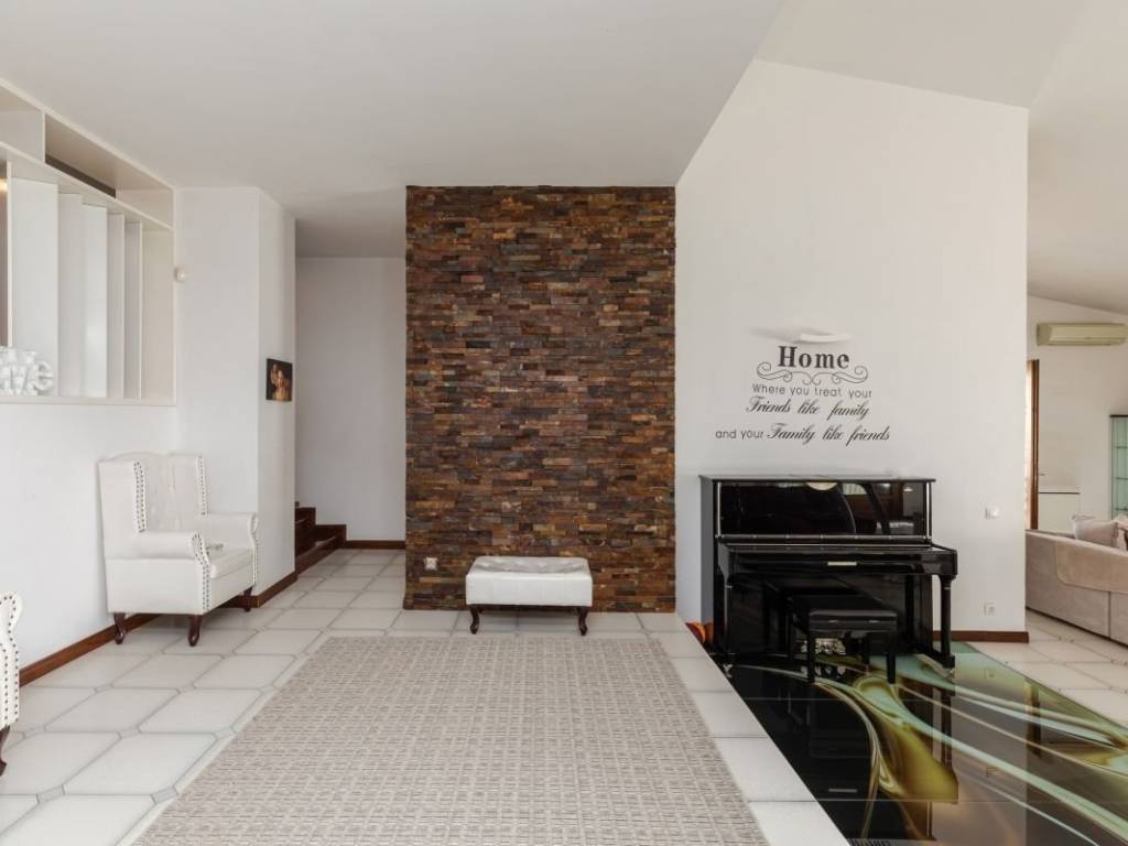 Το τζάκι στο καθιστικό προσθέτει έναν ζεστό και φιλόξενο αέρα στο χώρο, ενώ οι σύγχρονες ανέσεις όπως A/C, συναγερμό, ηλεκτρικές συσκευές και τέντες, εξασφαλίζουν άνεση και πολυτέλεια. Τα διπλά τζάμια, ο ηλιακός θερμοσίφωνας και οι σίτες παρέχουν επίσης πρόσθετη προστασία και ασφάλεια. Εσωτερικά, οι εσωτερικές σκάλες οδηγούν στον δεύτερο όροφο, όπου βρίσκονται τα μπαλκόνια που περιβάλλουν το σπίτι, ένας ιδανικός χώρος για να χαλαρώσετε και να απολαύσετε την εκπληκτική θέα. Τέλος, οι πολυτελείς πρόνοιες του κτιρίου όπως playroom, BBQ, δορυφορική κεραία και ανοιχτωσιά, είναι μόνο μερικά από τα πολλά πλεονεκτήματα που προσφέρει αυτή η μοναδική κατοικία.