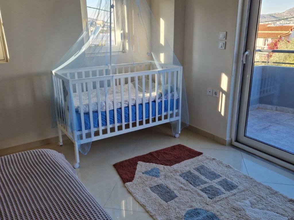 Καινούργιο σπίτι με κεντρική θέρμανση και κλιματισμό, ηλιακό θερμοσίφωνα για ζεστό νερό και ιδιωτικό χώρο στάθμευσης. Το σπίτι εκτείνεται σε 3 επίπεδα και είναι προσβάσιμο ανεβαίνοντας 15 σκαλιά. Επίπεδο 1: Ενιαίος χώρος σαλονιού και κουζίνας, καθώς και WC επισκεπτών. Επίπεδο 2: Υπνοδωμάτιο με μονό κρεβάτι, μεγάλο υπνοδωμάτιο με διπλό κρεβάτι, μπάνιο με ντουζιέρα. Επίπεδο 3: Υπνοδωμάτιο με διπλό κρεβάτι και en-suite μπάνιο με ντουζιέρα. Όλα τα δωμάτια διαθέτουν βεράντες, ενώ ο τρίτος όροφος διαθέτει επιπλέον μεγάλη βεράντα με εντυπωσιακή θέα στη θάλασσα και το βουνό. Η αυλή και ο χώρος στάθμευσης είναι κοινόχρηστα με το διαμέρισμα του ισογείου. Υπάρχει άνετος χώρος για 3-4 αυτοκίνητα. Η μαιζονέτα ενοικιάζεται πλήρως επιπλωμένη, είτε για βραχυχρόνια μίσθωση (έως 59 ημέρες) είτε για μακροχρόνια (60 ημέρες και άνω) διαμονή. Σε περίπτωση βραχυχρόνιας μίσθωσης, επιβάλλεται πράσινος φόρος που κυμαίνεται από 4 έως 15 ευρώ ανά διανυκτέρευση, ανάλογα με την εποχή. Η τιμή είναι διαπραγατεύσιμη για διαμονή από Οκτώβρη μέχρι τον Μάρτη. Δεκτοί μόνο σοβαροί ενοικιαστές ή επισκέπτες, όχι μεσίτες. Ευχαριστώ!