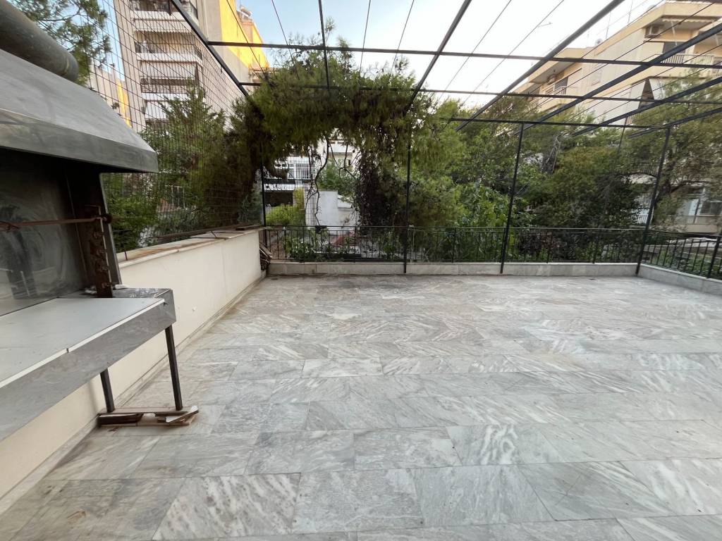 Διαμέρισμα υπερυψωμένου 1ου ορόφου στον Τσακό/Νέα Ζωή Αγίας Παρασκευής (οδός Τενέδου), τρίφατσο με μεγάλα μπαλκόνια σε πολυκατοικία που ανακαινίζεται εξωτερικά εντός του Αυγούστου. Αποστάσεις περπατήματος: 15 λεπτά από το Αμερικάνικο κολλέγιο (Deree), 12 λεπτά από το μετρό, 6 λεπτά από την πλατεία Αγίας Παρασκευής, σχολεία, σουπερμάρκετ, αγορά, καφετέριες, όλα σε κοντινή απόσταση, σε ήσυχη και πράσινη γειτονιά σε συγκρότημα με δεντροφύτευτο και περιποιημένο κήπο. Περιλαμβάνονται οι συσκευές της κουζίνας και δύο κρεβάτια, το διαμέρισμα μπορεί να παραδωθεί φουλ επιπλωμένο κατόπιν συνενόησης και μπορεί να παραδωθεί βαμμένο στα χρώματα της αρεσκείας του ενοικιαστή. Κατάλληλο για οικογένειες, διπλωμάτες, φοιτητές που αναζητούν ένα ήσυχο περιβάλλον κατοίκησης ή ακόμη και εργαζόμενους από το σπίτι.