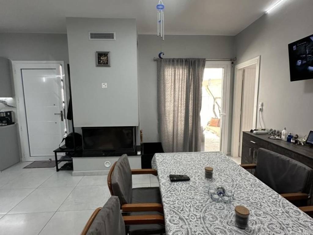 Η κατοικία περιλαμβάνει τρία άνετα υπνοδωμάτια, ένα μπάνιο και ένα επιπλέον WC, ενώ η μεγάλη κουζίνα, ενιαία με την τραπεζαρία και το καθιστικό, δημιουργεί έναν ζεστό και φιλόξενο χώρο για όλη την οικογένεια. Το ενεργειακό τζάκι σε συνδυασμό με την ενδοδαπέδια θέρμανση εξασφαλίζουν ζεστασιά και άνεση όλο τον χρόνο.