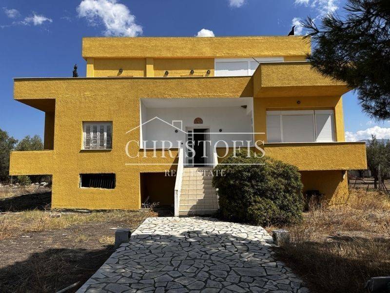 In one of the most privileged spots of Agioi Theodoroi, just 50 meters from the coastline, we present a rare detached house with an unlimited sea view and one of the largest plots in the area, with a total area of 1,939 sq m. It is a 370 sq m villa, built in the 80s, with an excellent distribution of spaces and huge possibilities for renovation or redesign.