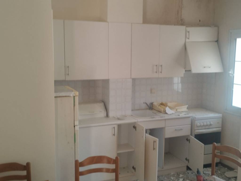 Το διαμέρισμα είναι 55.58τμ, έχει 2 μπαλκόνια.Εχει 2 υπνοδωμάτια με κλιματισμό.Στο ένα υπάρχει διπλό κρεβάτι κ εντοιχισμένη ντουλάπα.Στο άλλο υπάρχει καναπές με κρεβάτι από κάτω κ εντοιχισμένη ντουλάπα.Υπαρχει ενιαίος χώρος κουζίνα με καθιστικό στο οποίο επίσης υπάρχει κλιματισμός κ ανεμιστήρας οροφής..Το ένα μπαλκόνι έχει θέα την θάλασσα.Το διαμέρισμα είναι κλειστό πολλά χρόνια με αποτέλεσμα να υπάρχουν φθορές στους τοίχους εξωτερικα λογω της θέσης του οικισμού κοντά στην θάλασσα..θα χρειαστεί επισκευή εσωτερικαωτερικα στο ταβάνι εντός στην κουζίνα.