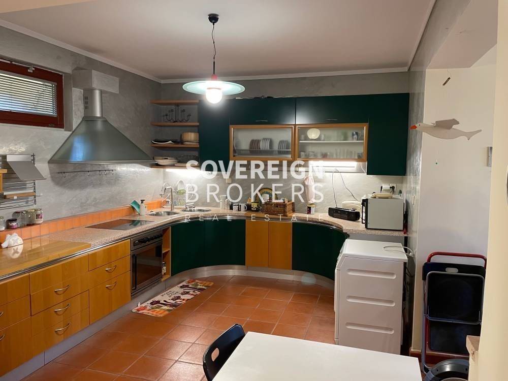 Στο 1ο όροφο των 232 τ.μ. συναντούμε ένα μεγάλο, φιλόξενο και άριστα διαμορφωμένο σαλόνι με τζάκι, το χώρο της τραπεζαρίας και την κουζίνα. Υπάρχουν επίσης 3 υπνοδωμάτια και το κυρίως υπνοδωμάτιο – master bedroom, 2 μπάνια και 1 wc.