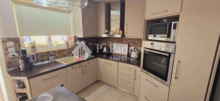 Πωλείται Διαμπερές Διαμέρισμα 5ου ορόφου, 108 τ.μ., στο κέντρο της Καλλιθέας. Μπαίνοντας συναντάμε τον Ενιαίο χώρο Καθιστικού-Τραπεζαρίας με Τζάκι και της Ανακαινισμένης Κουζίνας, ενώ στα αριστερά μας οδηγούμαστε προς τα Τρία Υ/Δ -με πρόσβαση σε Μπαλκόνι-, το Μπάνιο και το WC. Στη μπροστινή πλευρά του σπιτιού υπάρχει Βεράντα με Τέντες. Τα Κουφώματα είναι Αλουμινίου με Διπλά Τζάμια και η Θέρμανση Αυτόνομη Πετρελαίου. Διαθέτει Πόρτα Ασφαλείας, Θυροτηλεόραση, Κλιματισμό και Δύο Θέσεις Στάθμευσης σε Πυλωτή. Το παρόν Ακίνητο βρίσκεται σε πολύ καλό σημείο της περιοχής μόλις λίγα μέτρα από την Σιβιτανίδου και την Θησέως όπου υπάρχει ΄άμεση πρόσβαση σε Στάσεις Λεωφορείων και την ευρύτερη Αγορά. Επίσης, απέχει 10 λεπτά -με τα πόδια- από τον ΗΣΑΠ Καλλιθέας. - Για περισσότερες πληροφορίες ή για να κανονίσετε επίσκεψη, παρακαλούμε επικοινωνήστε μαζί μας. - Για την υπόδειξη του ακινήτου είναι απαραίτητη η υπόδειξη της αστυνομικής ταυτότητας και του Α.Φ.Μ. σας σύμφωνα με τον Ν.4072/11-4-2012 ΦΕΚ 86 Α.- P & Partners Real Estate, www.ppartners.gr, e-mail: info@ppartners.gr, Τηλ: 211 182 33 66
