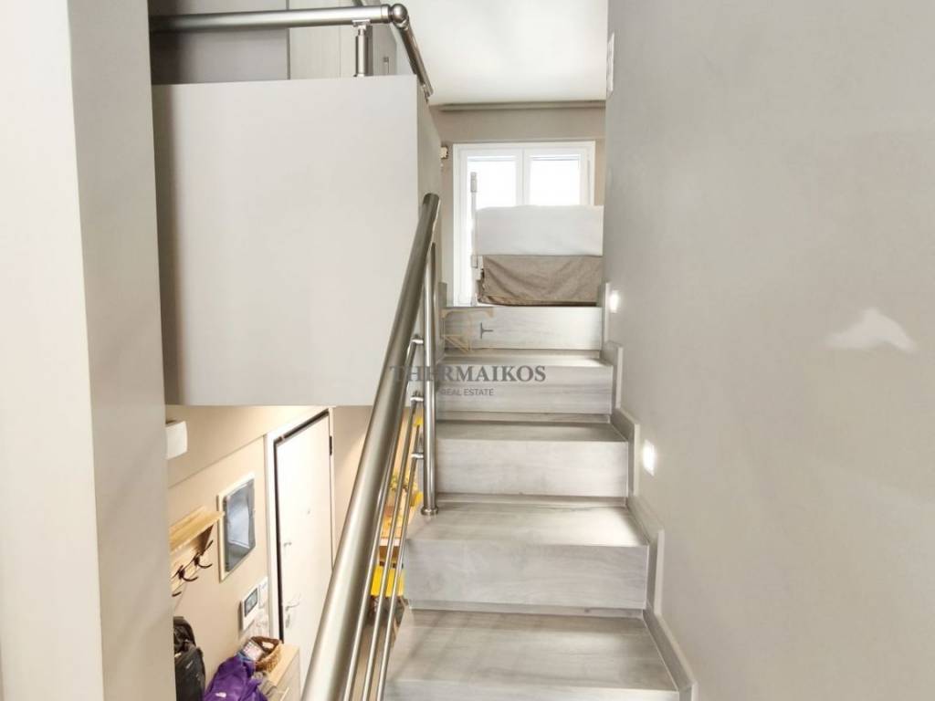 "Βούλγαρη - Άγιος Ελευθέριος" Πωλείται νεόδμητη, Μεζονέτα τύπου loft, πρόσοψης 73τ.μ. -Πρόκειται για ένα πολυτελές, διαμπερές και φωτεινό ακίνητο. -Βρίσκεται στον 1ο-2ο όροφο της οικοδομής και διαθέτει ασανσέρ. -Το ακίνητο αποτελεί μια αξιόλογη επιλογή για εργαζόμενους. -Κατασκευάστηκε το 2022. Είναι διαρρυθμισμένο σε 2 επίπεδα με εσωτερική σκάλα. -Αποτελείται από 1 υπνοδωμάτιο με ντουλάπα, σαλόνι, κουζίνα εξοπλισμένη με ηλεκτρικές συσκευές και 2 μπάνια. -Επιπλέον διαθέτει βεράντα σε όλους τους χώρους -και συγκεκριμένη θέση στάθμευσης. Στα εσωτερικά του στοιχεία αξίζει να σημειωθούν η θωρακισμένη πόρτα, θυροτηλεόραση. -ο συναγερμός και η δομημένη καλωδίωση, -ο ηλιακός Θερμοσίφωνας. Διαθέτει κουφώματα αλουμινίου με διπλά τζάμια και είναι εξοπλισμένα με σίτες. -Στα μπαλκόνια του υπάρχουν και τέντες. -Τα δάπεδα είναι από πλακάκια. -Στα θετικά στοιχεία του αξίζει να επισημανθεί η πλήρης επίπλωση (γωνιακός καναπές σαλονιού, τραπέζι σαλονιού πολυμορφικό επεκτεινόμενο, βιβλιοθήκη - σύνθετο, γραφείο, κρεβάτι με ανατομικό στρώμα, ντουλάπα με εσωτερικό φωτισμό, κομοδίνο, 2 συρταριέρες, τραπέζι κουζίνας με 4 καρέκλες, αλουμινένια ντουλάπα μπαλκονιού, ντουλάπα μπάνιου. Διαθέτει αυτόνομη ενδοδαπέδια θέρμανση με φυσικό αέριο (ατομική). - 2 κλιματιστικά A/C. -Η ενεργειακή του κλάση είναι A. -Ο προσανατολισμός είναι ανατολικοδυτικός. Βρίσκεται κοντά σε στάση λεωφορείου, - Σε απόσταση 200μ. από στάση μετρό (Βούλγαρη), -Άμεση πρόσβαση σε κεντρικό δρόμο και τον περιφερειακό. Τιμή Πώλησης: 250.000€. Το ακίνητο είναι άμεσα διαθέσιμο. Κωδικός ακινήτου: 10251 Για περισσότερα ακίνητα επισκεφθείτε την ιστοσελίδα μας http://www.thermaikosrealest.gr. Thermaikos Real Estate Κλεάνθους 39, Θεσσαλονίκη, Ελλάδα http://www.thermaikosrealest.gr info@thermaikosrealest.gr Τηλέφωνο: 2310900700 Κινητό: 6907219389, 6956139149 ΥΠΕΥΘΥΝΟΣ ΑΚΙΝΗΤΟΥ: ΣΑΛΒΑΡΗΣ ΓΙΩΡΓΟΣ Προσοχή! Για την υπόδειξη του ακινήτου είναι απαραίτητη η υπόδειξη της αστυνομικής ταυτότητας και του Α.Φ.Μ. σας σύμφωνα με τον Ν.4072/11-4-2012 ΦΕΚ 86 Α.