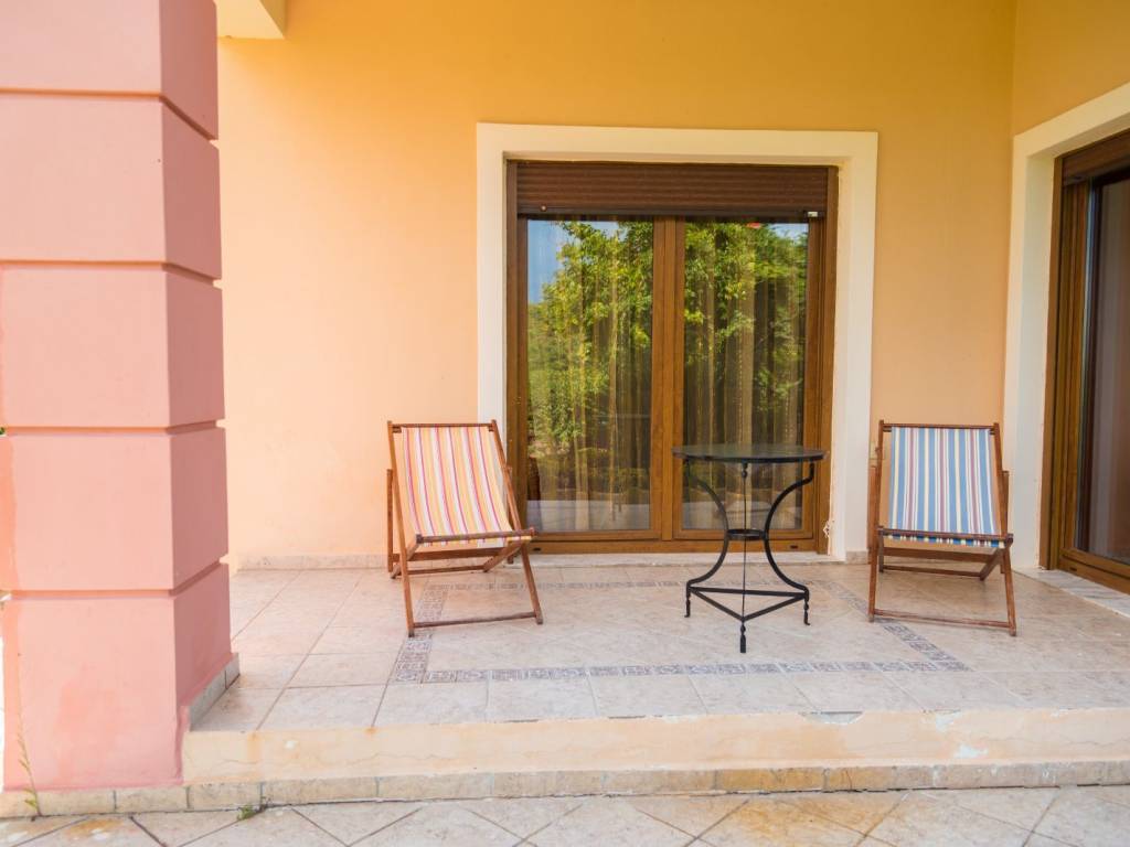 Το διαμέρισμα είναι πολυτελούς κατασκευής και είναι το ισογειο μιας διόρωφης μεζονέτας - βίλας και είναι πλήρως επιπλωμένο. . Εναι πλήρως ανεξάρτητο από το διαμέρισμα του 1ου ορόφου με ξεχωριστή είσοδο. Βρίσκεται μέσα σε έναν πανέμορφο κήπο 2 στρεμάτων με γκαζόν και θάμνους , άνθη κλπ και έχει πάρκινγκ εντός της ιδιοκτησίας. Το ισόγειο διαμέρισμα διατίθεται για ενοικίαση ΜΟΝΟΝ για την περίοδο 1/9 - 31/8 εκάστου έτους. Για τους μήνες Ιούλιο και Αύγουστο το διαμέρισμα θα παραδίδεται στον ιδιοκτήτη και η μίσθωση μπορεί να ανανεωθεί για την επόμενη χρονιά. Μπορεί να εξυπηρετήσει, μεταξύ άλλων, άτομα που η συνεχής διαμονή επί 12μηνο δεν είναι απαραίτητη πχ εκπαιδευτικούς, στρατιωτικούς, εργαζόμενους για συγκεκριμένη περίοδο κλπ, Διατίθεται και για βραχυχρόνια μίσθωση. Βρίσκεται σε μιά απόλυτα ήρεμη περιοχή, στην κορυφή ενός μικρού λόφου με μαγευτική θέα προς την θάλασσα. Η απόσταση από την Κάτω Αχαία είναι περίπου 8 λεπτά. Το διαμέρισμα διαθέτει ένα ευρύχωρο πληρως εξωπλισμένο καθιστικό και μια πλήρως εξωπλισμένη κουζίνα - τραπεζαρία. Διαθέτει 3 κρεβαττοκάμαρες (1 με μεγάλο διπλό κρεβάτι, μία με 2 μονά κρεβάτια και μία με ένα μονό κρεβάτι). Υπάρχει ακόμα ευρύχωρο και πλήρες μπάνιο με μπανιέρα. Υπάρχει κεντρική θέρμανση με πετρέλαιο καθώς και Ηλιακός θερμοσίφωνας. Τα κουφώματα είναι σε απόχρωση ξύλου και έχουν διπλά τζάμια.