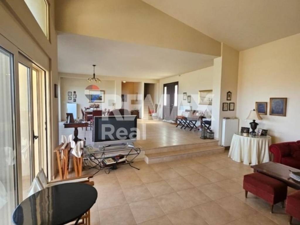 Ευρύχωρος ενιαίος χώρος με δύο μεγάλα σαλόνια, το ένα με τζάκι