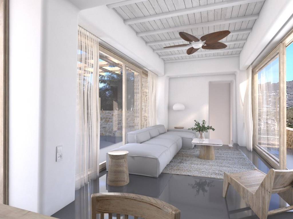 Χτισμένο σε μια ήσυχη πλαγιά στο Φτελιά της Μυκόνου, αυτό το εξαιρετικό ακίνητο προσφέρει έναν σπάνιο συνδυασμό ιδιωτικότητας, φυσικής ομορφιάς και μαγευτικής, ανεμπόδιστης θέας στο Αιγαίο Πέλαγος. Η τοποθεσία προστατεύεται από τους ανέμους και προσφέρει απόλυτη γαλήνη, ενώ παραμένει κοντά στα βασικά αξιοθέατα του νησιού. Η βίλα εκτείνεται σε 171 τ.μ. και αναπτύσσεται σε δύο επίπεδα, με προσεγμένο σχεδιασμό που συνδυάζει την κυκλαδίτικη κομψότητα με τη σύγχρονη πολυτέλεια. Οι εξωτερικοί χώροι είναι οργανωμένοι γύρω από μια μεγάλη ιδιωτική πισίνα, πλαισιωμένη από ξύλινες ξαπλώστρες και λιθόστρωτα μονοπάτια. Ένας μεσογειακός κήπος με αρωματικά, ντόπια φυτά δημιουργεί μια φυσική προέκταση των εσωτερικών χώρων. Μια σκιερή πέργκολα με καθιστικό ολοκληρώνει την εμπειρία εξωτερικού χώρου, ιδανική για φαγητό, χαλάρωση ή απόλαυση των παγκοσμίως γνωστών ηλιοβασιλεμάτων της Μυκόνου. Στο εσωτερικό, η βίλα διαθέτει έναν ανοιχτό χώρο καθιστικού, τραπεζαρίας και κουζίνας, σχεδιασμένο με καθαρές αρχιτεκτονικές γραμμές και φυσικές υφές. Η κουζίνα είναι προδιαμορφωμένη για σύγχρονες εντοιχισμένες συσκευές και έχει σχεδιαστεί τόσο για την καθημερινή άνεση όσο και για τη φιλοξενία. Το ακίνητο διαθέτει τέσσερα υπνοδωμάτια με ιδιωτικά μπάνια (en-suite), προσφέροντας απόλυτη άνεση και ιδιωτικότητα. Τρία από τα υπνοδωμάτια βρίσκονται στο ισόγειο, με άμεση πρόσβαση στον κήπο και την πισίνα, ενώ τα δύο στον επάνω όροφο διαθέτουν ιδιωτικές βεράντες και εντυπωσιακή θέα στη θάλασσα. Επιπλέον παροχές περιλαμβάνουν δύο ιδιωτικές θέσεις στάθμευσης, κλιματισμό, ενεργειακά αποδοτικά κουφώματα, καθώς και προεγκατάσταση για αυτοματισμούς smart home και συστήματα ασφαλείας. Χτισμένο σε οικόπεδο 976 τ.μ., αυτό το ακίνητο συνδυάζει παράδοση και σύγχρονη πολυτέλεια, αποτελώντας την ιδανική επιλογή για όσους αναζητούν μια ιδιωτική απόδραση, μόνιμη κατοικία ή μια επένδυση με υψηλή απόδοση σε μία από τις πιο περιζήτητες περιοχές της Μυκόνου.