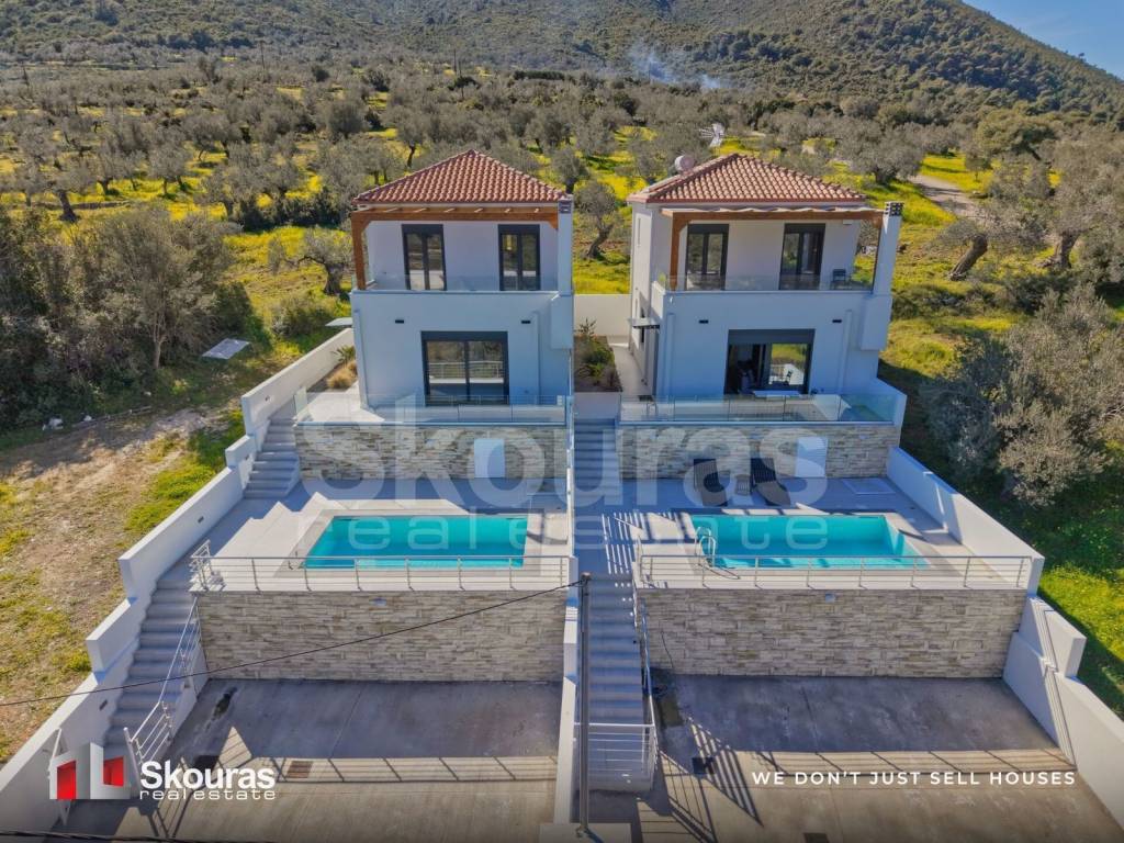 Στην περιοχή της Παλαιάς Επιδαύρου και μόλις λίγα χλμ. από το αρχαίο θέατρο διατίθενται προς πώληση δύο σύγχρονες, ανεξάρτητες μονοκατοικίες 120 τ.μ. η καθεμία, χτισμένες σε οικόπεδο 250 τ.μ. Το σχέδιο των κατοικιών ξεχωρίζει για τη μοντέρνα αισθητική και τα μεγάλα ανοίγματα, προσφέροντας άπλετο φυσικό φως και άμεση σύνδεση με το εξωτερικό περιβάλλον. Κάθε κατοικία εκτείνεται σε δύο επίπεδα. Στο ισόγειο θα βρείτε έναν ευρύχωρο και φωτεινό χώρο καθιστικού με σαλόνι και τραπεζαρία, μία πλήρως εξοπλισμένη κουζίνα, ένα άνετο υπνοδωμάτιο και ένα λουτρό. Ο επάνω όροφος φιλοξενεί δύο επιπλέον υπνοδωμάτια, ένα δεύτερο λουτρό και μία μεγάλη βεράντα με εκπληκτική θέα. Στον εξωτερικό χώρο κάθε κατοικίας υπάρχει ιδιωτική πισίνα και χώρος στάθμευσης για δύο οχήματα. Οι κατοικίες είναι εξοπλισμένες με σύγχρονα συστήματα ψύξης και θέρμανσης μέσω αντλίας θερμότητας, θερμοδιακοπτόμενα κουφώματα PVC και ηλιακό θερμοσίφωνα, εξασφαλίζοντας άνεση και ενεργειακή αποδοτικότητα. Η τοποθεσία τους προσφέρει εύκολη πρόσβαση στις κοντινές παραλίες και απέχει μόλις 25 λεπτά από το γραφικό Ναύπλιο. Επιπλέον, οι κατοικίες διατίθενται προαιρετικά επιπλωμένες, με την επίπλωση που απεικονίζεται στις φωτογραφίες, με επιπλέον κόστος 20.000€. Αποτελούν ιδανική επιλογή για μόνιμη ή εξοχική κατοικία σε μία από τις πιο όμορφες και ιστορικές περιοχές της Πελοποννήσου. Skouras Real Estate Μεσιτική εταιρεία στην Πελοπόννησο Ναύπλιο | Καλαμάτα | Πορτοχέλι | Κόρινθος Μέλος ΕΠΠΑ, CEI, NAR Τηλ. Κέντρο: 27520-29529 Κιν.: +306947793900 msk@skourasrealestate.gr Υπεύθυνος Ακινήτου: Σκούφης Μάριος Οι πληροφορίες των ακινήτων που παρουσιάζουμε είναι αυτές που μας έχουν προσκομίσει οι ιδιοκτήτες. Η εταιρεία μας δε φέρει ευθύνη για τυχόν λανθασμένες πληροφορίες. Για την επίσκεψη ακινήτων απαιτείται προσκόμιση ταυτότητας/διαβατηρίου. Οι τοποθεσίες των ακινήτων στον χάρτη είναι κατά προσέγγιση. Περισσότερα από 2,000 ακίνητα στο www.skourasrealestate.gr #wedontjustsellhouses