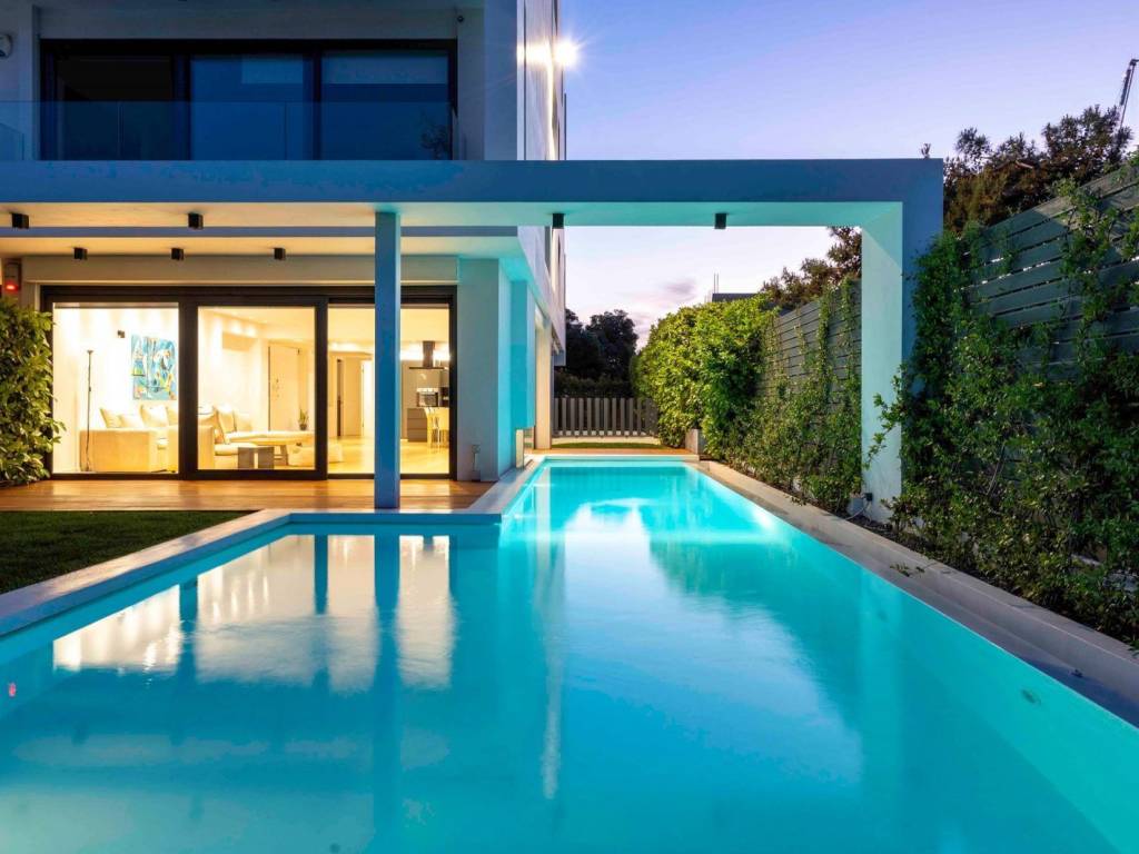 Αυτή η μοναδική κατοικία, συνολικής επιφάνειας 305 τ.μ., σχεδιασμένη από το διακεκριμένο αρχιτεκτονικό γραφείο ISV και αναπτύσσεται σε δύο επίπεδα. Βρίσκεται σε πολυτελές κτίριο μόλις 8 διαμερισμάτων, σε απόσταση 250 μέτρων από τη θάλασσα, πολύ κοντά στο εμβληματικό έργο The Hellenikon Project και μόλις 1,5 χιλ. από το εμπορικό κέντρο της Γλυφάδας. Με μίνιμαλ γραμμές, σύγχρονη αισθητική και υψηλή ενεργειακή απόδοση (κλάση Α), η μεζονέτα διαθέτει ιδιωτικό κήπο, ιδιωτική πισίνα υπερχείλισης με δυνατότητα θέρμανσης, αντίθετης ροής και υδρομασάζ, καθώς και πρόσβαση σε κοινόχρηστη πισίνα. Η κατοικία αναπτύσσεται σε δύο πλήρως λειτουργικά επίπεδα με ανεξάρτητες εισόδους για να διευκολύνει την πρόσβαση μέσω του κοινόχρηστου ασανσέρ. Το ισόγειο περιλαμβάνει μεγάλο open-plan ενιαίο χώρο που συνδυάζει τη μοντέρνα κουζίνα με νησίδα, την τραπεζαρία και το σαλόνι. Ένα ανοιχτό τζάκι με πλάτη από ειδικά κατασκευασμένο γυαλί δημιουργεί μοναδική ατμόσφαιρα, καθώς οι φλόγες αντανακλώνται στο νερό της πισίνας και στο πράσινο του κήπου. Μεγάλες μπαλκονόπορτες οδηγούν στον μπροστινό ιδιωτικό κήπο με γκαζόν και την πισίνα με ξύλινο deck. Η πλούσια φύτευση συντελεί στην πλήρη ιδιωτικότητα του εξωτερικού χώρου. Σε αυτό το επίπεδο βρίσκονται, επίσης, ένα master υπνοδωμάτιο με άμεση έξοδο στον πίσω κήπο και το wc επισκεπτών. Κατεβαίνοντας στο 2ο επίπεδο, συναντάμε ένα ευρύχωρο playroom / καθιστικό με βοηθητική πλήρως εξοπλισμένη κουζίνα, 2 μεγάλα master υπνοδωμάτια με en suite μπάνια. Οι τρεις χώροι πλαισιώνουν έναν φυτεμένο patio-κήπο που λειτουργεί ως φυσικός πυρήνας εξασφαλίζοντας φυσικό φωτισμό και αερισμό. Επιπλέον, ένα τρίτο υπνοδωμάτιο χάρη στον ευέλικτο σχεδιασμό του αποτελεί ιδανική επιλογή για χρήση ως ξενώνας, γραφείο, γυμναστήριο, ή δωμάτιο προσωπικού συνδυάζοντας ιδιωτικότητα, λειτουργικότητα. Διαθέτει en suite μπάνιο, καθώς και ηλεκτρικά ανοιγόμενο παράθυρο και παντζούρι οροφής. Όλοι οι χώροι έχουν μελετηθεί ώστε να προσφέρουν άριστη ποιότητα διαβίωσης, λειτουργικότητα, πολυτέλεια και εξοπλισμό υψηλής τεχνολογίας. Η κατοικία διαθέτει: • Αυτόνομη αντλία θερμότητας DAIKIN • Ενδοδαπέδια θέρμανση & δροσισμός • Fan coils DAIKIN σε όλους τους χώρους • Προεγκατάσταση Smart Home • Σύστημα συναγερμού με κάμερες & απομακρυσμένη πρόσβαση • Οπτική ίνα, Wi-Fi & ενσύρματο internet υψηλών ταχυτήτων • Εντοιχισμένες ηλεκτρικές συσκευές • Ιταλικά είδη υγιεινής & ξύλινα δάπεδα SKEMA • Deck GARAPA A’ ποιότητας από RAVAIOLI • Έγχρωμη θυροτηλεόραση, φωτισμός LED • 2 υπόγειες θέσεις στάθμευσης • Αποθήκη εντός του διαμερίσματος Η κατοικία βρίσκεται σε ένα από τα πλέον περιζήτητα σημεία της Α’ Ζώνης του Ελληνικού. Η προνομιακή της θέση διασφαλίζει ηρεμία και ανεμπόδιστη καθημερινότητα. Ο μοναδικός συνδυασμός παραθαλάσσιας τοποθεσίας, υψηλού πολεοδομικού σχεδιασμού και μελλοντικής υπεραξίας, καθιστούν την κατοικία ιδανική επιλογή τόσο για ιδιοκατοίκηση, όσο και για επένδυση. Τοποθεσία: Το Ελληνικό βρίσκεται στην Αθηναϊκή Ριβιέρα και βρέχεται από το Σαρωνικό. Αποτελεί τον πυρήνα του μεγαλύτερου έργου αστικής ανάπλασης στην Ευρώπη, που θα περιλαμβάνει πολυτελείς κατοικίες, ξενοδοχεία, εμπορικά καταστήματα, κτίρια γραφείων, χώρους αναψυχής, ιδιωτικό σχολείο, νοσοκομείο, μία σύγχρονη μαρίνα, καζίνο και ένα πάρκο εφάμιλλο των διασημότερων πάρκων στον κόσμο. Οι νέες υποδομές θα εναρμονίζονται με τις υπάρχουσες αλλάζοντας π