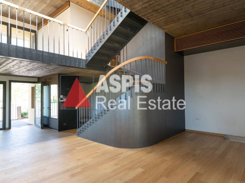 Θρακομακεδόνες μεζονέτα ισόγειο συνολικής επιφάνειας 200 τ.μ. Αναπτύσσεται σε 4 επίπεδα συμπεριλαμβανομένου και του ισογείου με ανοιγόμενο αίθριο (skylight,)το ισόγειο διαθέτει σαλόνι, τραπεζαρία, με απευθείας πρόσβαση στο κήπο από τις μεγάλες μπαλκονόπορτες, καθιστικό με τζάκι και κουζίνα. Ο ημιώροφος έχει 1 μεγάλο χωρο σαν καθιστικό, 1 υπνοδωμάτιο υπηρεσίας με ντουλάπα κι ένα μικρό μπάνιο με ντουζιέρα. Ο 1 όροφος έχει ένα υπνοδωμάτιο master με dressing room και συνεχόμενο μπάνιο με ντουζιέρα. Ο τελευταίος όροφος έχει 2 υπνοδωμάτια με ντουλάπες κι ένα μπάνιο με ντουζιέρα. Το wc και τα μπάνια είναι με πατητή τσιμεντοκονία. Υπάρχει ξεχωριστός χώρος με παροχή για πλυντήριο, στεγνωτήριο και εσωτερική αποθήκη. Εκτός από την κουζίνα, το wc και τα μπάνια, όλοι οι υπόλοιποι χώροι έχουν ξύλινα δρύινα πατώματα.πολύ μοντέρνο και λειτουργικό σχεδιασμό, υψηλής αισθητικής με κάλυψη μέρους των εξωτερικών χώρων από τιτανιούχο ψευδάργυρο (zinc). Υλικά κατασκευής εξαιρετικής ποιότητας, με μεγάλα ανοίγματα, ώστε ο χώρος να φαίνεται συνέχεια του κήπου και όλοι οι χώροι να έχουν φυσικό φωτισμό όλη την ημέρα.. Η κατοικία έχει εσωτερικό ανελκυστήρα και όλοι οι χώροι και ο κήπος είναι προσβάσιμοι από ΑΜΕΑ. ενεργειακή κλάση Α+ και διαθέτει θέρμανση αυτόνομη - φυσικού αερίου βιοκλιματική, εξ’ ολοκλήρου «πράσινη», ενεργειακής κατηγορίας Α+ (plus), με φωτοβολταϊκά, φυσικό αέριο ( καυστήρας Vaillant), ηλιακούς συλλέκτες (Calpak), διπλά ενεργειακά κουφώματα (Alumil), με τελευταίας τεχνολογίας ενδοδαπέδια θέρμανση και κλιματισμό VRV DAIKIN, ενσύρματο WI FI σε όλους τους χώρους, πυρανίχνευση σε όλους τους χώρους, εξωτερικό και εσωτερικό σύστημα αντικεραυνικής προστασίας, ανιχνευτές κίνηση, κάμερες ασφαλείας που ελέγχουν τόσο τις κατοικίες όσο και στους κήπους, συναγερμό και θυροτηλεόραση. Υπάρχει παροχή για φόρτιση ηλεκτρικού αυτοκινήτου στα γκαράζ.