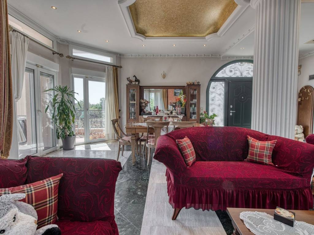 Έπαυλη πολυτελείας, εξαιρετικής αρχιτεκτονικής με τεράστιες βεράντες και απεριόριστη θέα. Ο ημιυπόγειος χώρος αποτελείται από μεγάλη κουζίνα-καθιστικό, μπάνιο, τζάκι διπλής όψεως, κρεβατοκάμαρα και επιπλέον χώρο που μπορεί να χρησιμοποιηθεί σαν γραφείο ή ότιδήποτε άλλο επιλέξει ο νέος ιδιοκτήτης. Το κομμάτι αυτό της κατοικίας έχει την δυνατότητα να αποτελέσει ανεξάρτητο διαμερίσμα. Στο υπόλοιπο μισό του ίδιου ορόφου υπάρχουν βοηθητικοί αποθηκευτικοί χώροι (ντουλάπες, πλυντήριο, σιδερωτήριο κλπ). Ο ισόγειος όροφος αποτελείται από μεγάλη κουζίνα με κεντρικό πάγκο, και ακολουθεί ένας μεγάλος χώρος με 2 σαλόνια, τραπεζαρία, τζάκι επενδυμένο με σκαλιστά μάρμαρα, πάτωμα απίστευτης ομορφιάς από μάρμαρα Νάξου και ένα πανέμορφο αίθριο που προσδίδει την αίσθηση της άμεσης επαφής με τον κήπο. Στον ίδιο όροφο υπάρχει WC, επιπλέον δωμάτιο με επιλογή χρήσης ως γραφείο ή κρεβατοκάμαρα, καθιστικό με δεύτερο τζάκι, επενδυμένο με ξύλο ιδιαίτερης αισθητικής, και πορσελάνινο ιταλικό πάτωμα απίστευτης ομορφιάς. Ο δεύτερος όροφος (στον οποίο οδηγεί μια μεγάλη μαρμάρινη σκάλα) αποτελείται από ένα τεράστιο υπνοδωμάτιο με καταπληκτική και απεριόριστη θέα, με δικό του μπάνιο και ντουλάπα-δωμάτιο), δύο κρεβατοκάμαρες, μεγάλο μπάνιο με γωνιακή μπανιέρα και χτιστό πάγκο με δύο νιπτήρες. Η θέα από όλα τα δωμάτια αυτού του ορόφου είναι καταπληκτική! Επίσης, υπάρχει εσωτερικό μπαλκόνι που βλέπει στο αίθριο. Η επικοινωνία μεταξύ των ορόφων εξυπηρετείται και με ασανσέρ. Παράλληλα, υπάρχει σε κάθε όροφο ανεξάρτητη ρύθμιση λειτουργίας της θέρμανσης, η οποία εξυπηρετείται με αντλία θερμότητας, ενώ παράλληλα υπάρχουν φωτοβολταϊκά ισχύος 10kw. Ο κήπος αποτελείται από τεράστια ποικιλία καλλωπιστικών φυτών (τριανταφυλλιές, βουκαμβίλιες, μαργαρίτες, πασχαλιές, νυχτολούλουδα κλπ.), οπωροφόρα δένδρα (ροδιές, πορτοκαλιές, μανταρινιές, κερασιές, βερικοκιές, λεμονιές κλπ.) θάμνους, λαχανόκηπο και ελαιόδεντρα. Ο κήπος εξυπηρετείται με αυτόματο πότισμα γκαζόν. Τέλος, η κατοικία διαθέτει πισίνα, περιμετρικά της περίφραξης δένδρα leiland, 2 κλειστές θέσεις πάρκινγκ και 4 ανοιχτές. Τοποθεσία: Το Πλαγιάρι βρίσκεται 22 χιλιόμετρα νότια από το κέντρο της Θεσσαλονίκης. Μοναδικά Χαρακτηριστικά: H περιοχή είναι χτισμένη αμφιθεατρικά στο μεγαλύτερο μέρος της πάνω από τις ακτές του Θερμαϊκού. Τα τελευταία χρόνια το Πλαγιάρι προσελκύει πληθυσμούς με μεσαία και υψηλά εισοδήματα ενώ η αλματώδης αύξηση του πληθυσμού άρχισε μετά το σεισμό του 1978. Η περιοχή βρίσκεται 5 χιλιόμετρα από τη θάλασσα της Περαίας και 10 χιλιόμετρα από τη θάλασσα της Επανομής προσφέροντας στους κατοίκους της αρκετές επιλογές για την περίοδο του καλοκαιριού. Προσβασιμότητα: Το Πλαγιάρι βρίσκεται μόλις 10 χιλιόμετρα από το αεροδρόμιο, 20 χιλιόμετρα από το κέντρο της Θεσσαλονίκης ενώ η περιοχή εξυπηρετείται από δύο γραμμές του ΟΑΣΘ. Επενδυτική Δύναμη: Η στρατηγική θέση της περιοχής αυξάνει το επενδυτικό της ενδιαφέρον.