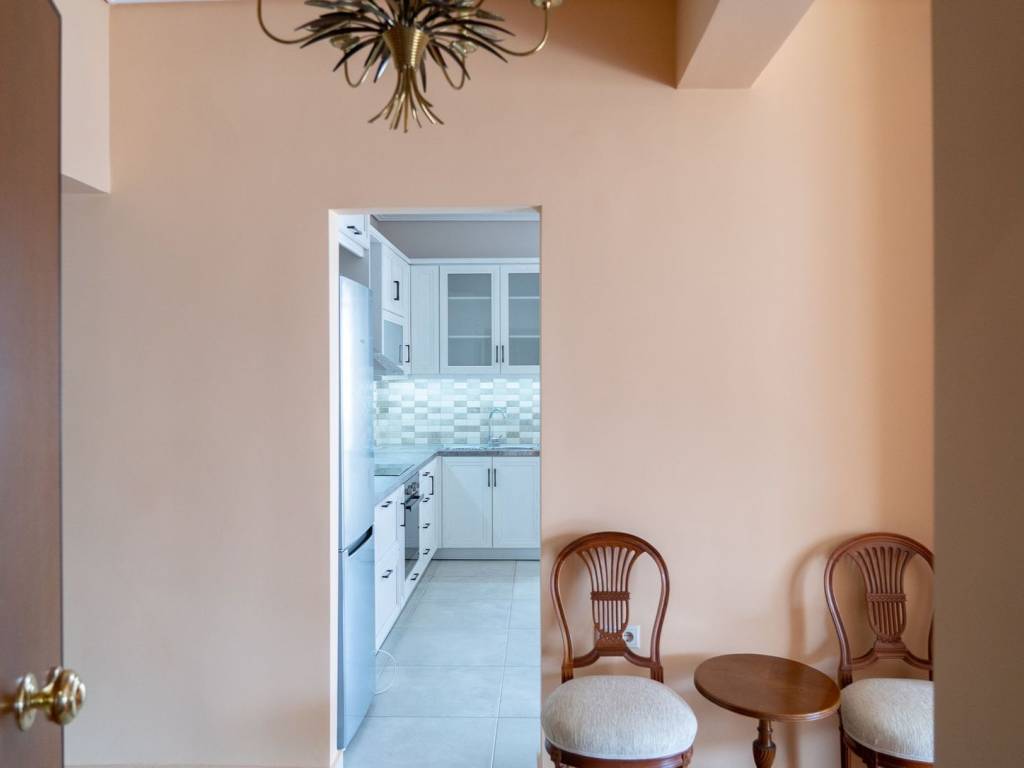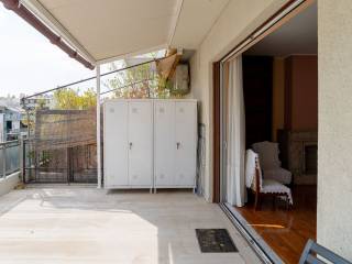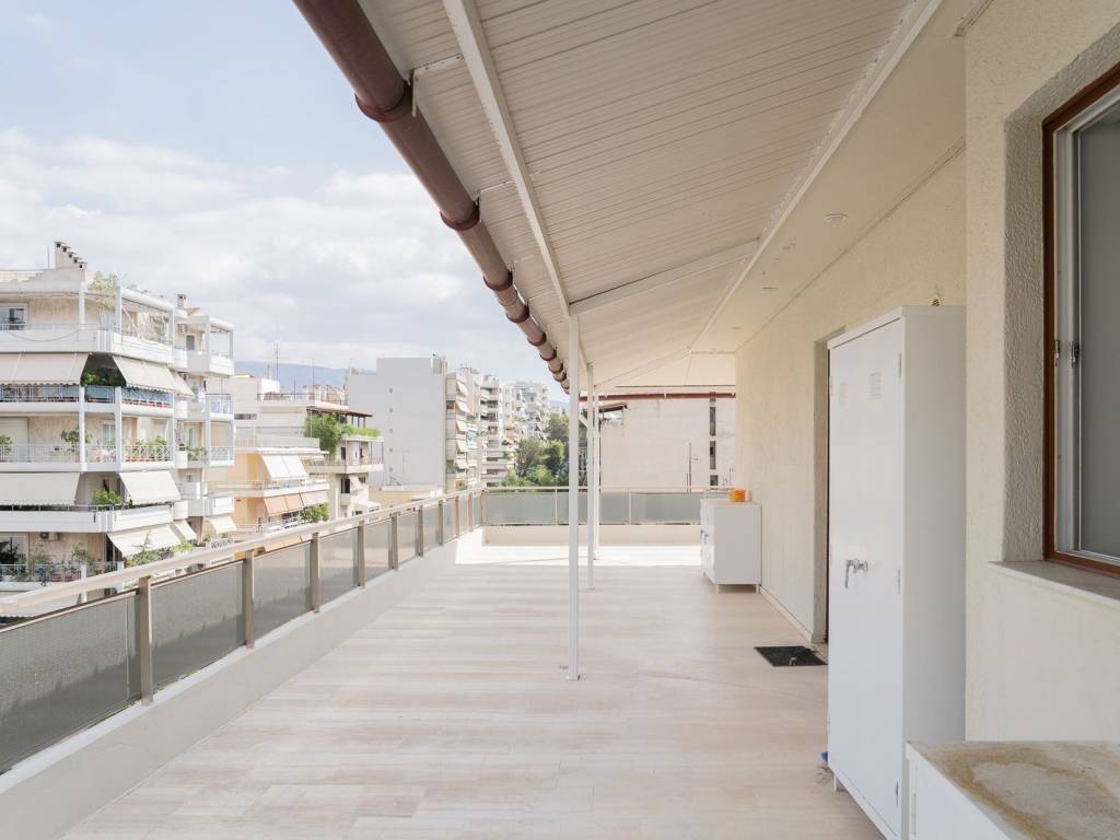 Η Εngel & Volkers παρουσιάζει ένα κομψό ρετιρέ διαμέρισμα στη Νέα Σμύρνη, με εξαιρετική τοποθεσία δίπλα στη λεωφόρο Συγγρού και την πλατεία της Νέας Σμύρνης, η οποία απέχει 10 λεπτά με τα πόδια ή 750 μέτρα. Επιπλέον, το Άλσος Νέας Σμύρνης απέχει 6 λεπτά με τα πόδια ή 400 μέτρα. Το διαμέρισμα του έκτου ορόφου έχει συνολικό εμβαδόν 104 τ.μ. Διατίθεται μαζί με ένα ακόμα διαμέρισμα, το οποίο βρίσκεται στον τελευταίο όροφο του κτιρίου, στον έβδομο, με συνολικό εμβαδόν 14 τ.μ., το οποίο είναι για χρήση ως γραφείο. Και τα δύο διαμερίσματα έχουν καταπληκτική πανοραμική θέα και μεγάλες βεράντες. Το διαμέρισμα του έκτου ορόφου διαθέτει καθιστικό με υπέροχο τζάκι, πλήρως εξοπλισμένη κουζίνα με όλες τις ηλεκτρικές συσκευές: ψυγείο, πλυντήριο πιάτων και ηλεκτρική κουζίνα με κεραμικές εστίες, καθώς και δύο ηλιόλουστα και ευρύχωρα υπνοδωμάτια. Το ένα υπνοδωμάτιο διατίθεται χωρίς επίπλωση. Το άλλο υπνοδωμάτιο διαθέτει μεγάλο αποθηκευτικό χώρο με εντοιχισμένη ντουλάπα. Το μπάνιο είναι διαθέσιμο με πλυντήριο ρούχων και με ντους οροφής με μηχανισμό κεφαλής. Επιπλέον υπάρχει ένα W.C. Στη βεράντα, υπάρχουν ντουλάπες εξωτερικού χώρου. Το διαμέρισμα του έβδομου ορόφου διαθέτει έναν ενιαίο χώρο και είναι διαμορφωμένο ως γραφείο, διαθέσιμο με μικρή κουζίνα με πάγκο και ντουλάπια και ένα μπάνιο με ντους. Οι δύο βεράντες προσφέρουν εξαιρετική θέα στο Αθηναϊκό τοπίο και στον τελευταίο όροφο βλέπεις την θέα από το λόφο του Φιλοπάππου. Τα κύρια χαρακτηριστικά των δύο διαμερισμάτων είναι τα εξής: πλήρως επιπλωμένα και έτοιμα για κατοίκηση, φωτεινά και ευάερα, τύπος δαπέδων: γκρι πλακάκια υψηλής ποιότητας και άριστα παρκέ δάπεδα, παράθυρα αλουμινίου με διπλά τζάμια, αυτόνομη θέρμανση με φυσικό αέριο, πόρτες ασφαλείας, και χαμηλά κοινόχρηστα για την πολυκατοικία. Το διαμέρισμα απέχει 15 λεπτά με το αυτοκίνητο από τη θάλασσα και 15 λεπτά με το αυτοκίνητο από το ιστορικό κέντρο της Αθήνας. Βρίσκεται σε βολική τοποθεσία δίπλα στη λεωφόρο Ανδρέα Συγγρού, 16 λεπτά με τα πόδια από το Πάντειο Πανεπιστήμιο, 2,6 χλμ. από το σταθμό του μετρό Συγγρού-Φιξ με το αυτοκίνητο και 3 χλμ. από το Ίδρυμα Σταύρος Νιάρχος με το αυτοκίνητο ή 30 λεπτά με τα πόδια. Επιπλέον, το τραμ και τα λεωφορεία συνδέουν την περιοχή με την υπόλοιπη Αθήνα. Το αεροδρόμιο απέχει 40 λεπτά έως μία ώρα με τρένο εξπρές και με απευθείας λεωφορεία, ενώ το λιμάνι του Πειραιά απέχει 18 λεπτά με λεωφορείο.