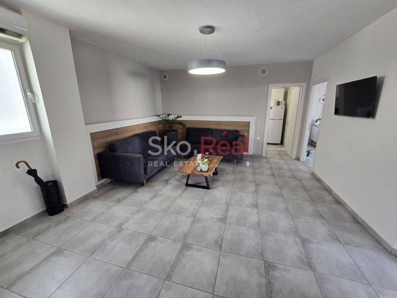 - Αποτελείται από 2 δωμάτια με δυνατότητα να δημιουργηθεί και ένας τρίτος χώρος, σαλόνι - χώρος αναμονής, κουζίνα, μπάνιο και Wc.