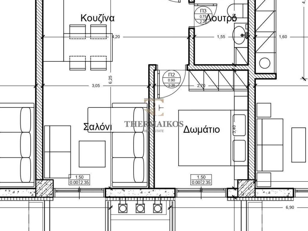 "Καλαμαριά - Άγιος Ιωάννης" Πωλείται νεόδμητο, διαμέρισμα, 45,75τ.μ. (40,43τ.μ. καθαρό). -Πρόκειται για ένα πολυτελές, φωτεινό ακίνητο προσόψεως. -Βρίσκεται στον 2ο όροφο της οικοδομής. -Καινούργιο Project υπό κατασκευή ακίνητο. Αποτελείται από 1 υπνοδωμάτιο με ντουλάπα, σαλοκουζίνα και 1 μπάνιο. -Επιπλέον διαθέτει βεράντα. Στα εσωτερικά του στοιχεία αξίζει να σημειωθούν η θωρακισμένη πόρτα και η δομημένη καλωδίωση. Διαθέτει κουφώματα αλουμινίου με διπλά τζάμια και είναι εξοπλισμένα με σίτες. Τα δάπεδα είναι από ξύλο και πλακάκια. Διαθέτει αυτόνομη θέρμανση με φυσικό αέριο (ατομική). Επιπρόσθετα υπάρχει ενδοδαπέδια θέρμανση. Η ενεργειακή του κλάση είναι A+. Βρίσκεται κοντά σε στάση λεωφορείου, στάση μετρό, αεροδρόμιο, σχολείο, πάρκο και παραλία. Με βάση τα χαρακτηριστικά του μπορεί να χαρακτηριστεί ως μια πολύ καλή επενδυτική επιλογή. Τιμή πώλησης: 180000€. Κωδικός ακινήτου: 10386 Για περισσότερα ακίνητα επισκεφθείτε την ιστοσελίδα μας http://www.thermaikosrealest.gr. Thermaikos Real Estate Κλεάνθους 39, Θεσσαλονίκη, Ελλάδα http://www.thermaikosrealest.gr info@thermaikosrealest.gr Τηλέφωνο: 2310900700 Κινητό: 6907218688 ΥΠΕΥΘΥΝΟΣ ΑΚΙΝΗΤΟΥ: ΠΑΠΑΔΟΠΟΥΛΟΣ ΛΑΖΑΡΟΣ Προσοχή! Για την υπόδειξη του ακινήτου είναι απαραίτητη η υπόδειξη της αστυνομικής ταυτότητας και του Α.Φ.Μ. σας σύμφωνα με τον Ν.4072/11-4-2012 ΦΕΚ 86 Α.