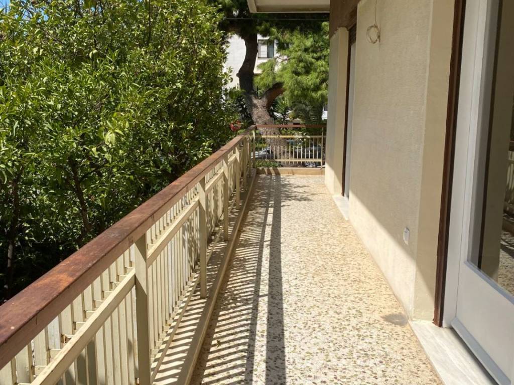 Νέα Σμύρνη, κοντά στη Λεόντειο Σχολή, ανακαινισμένο γωνιακό διαμέρισμα 90 τ.μ., υπερυψωμένο ισόγειο, με έτος κατασκευής 1970. Το διαμέρισμα διαθέτει μεγάλο χωλ, 2 υπνοδωμάτια, λουτρό, ξεχωριστή κουζίνα, άνετο και φωτεινό σαλόνι, περιμετρική βεράντα. Διαθέτει κεντρική θέρμανση με πετρέλαιο, αποθήκη, πατάρι και πίσω αυλή. Βρίσκεται απέναντι από πάρκο, πλησίον αγοράς και στάσης λεωφορείων. Ενοίκιο € 670