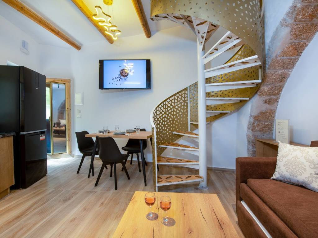 In the old town of Chania. The apartment has one bedroom, one bathroom and a small wc as well as a spacious living room. With air conditioning, terrace, balcony and free Wi-Fi