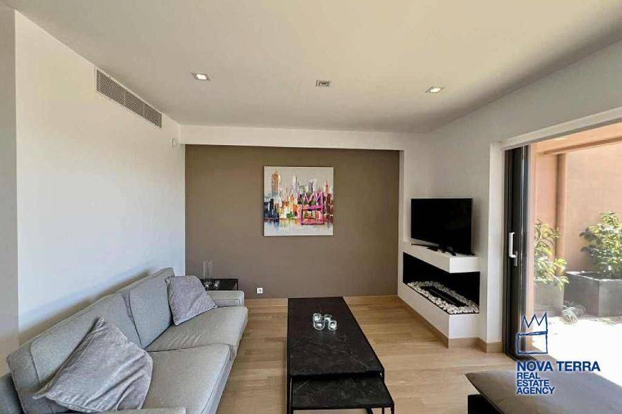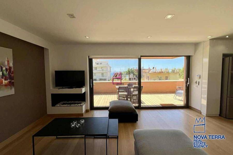GLYFADA,CENTER, 50M FROM THE BEACH Furnished Apartment, 96 sq.m, year built 2008, 2 rooms, 2nd, View: Seaview, Various Characteristics: Balcony, Bath, Escalator, Fire Place, Refurbished, Store Room, Toilet, Flooring: Wooden floor, Heating: Autonomous Heating, , From Side to Side, Luxury, Minimal, Newly built, Satellite TV, Security Alarm, Security Door, Solar Heating, : : Parking area: Garage, property ID: 40416, www.nova-terra.gr