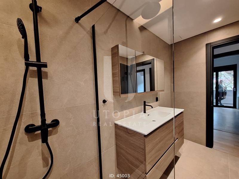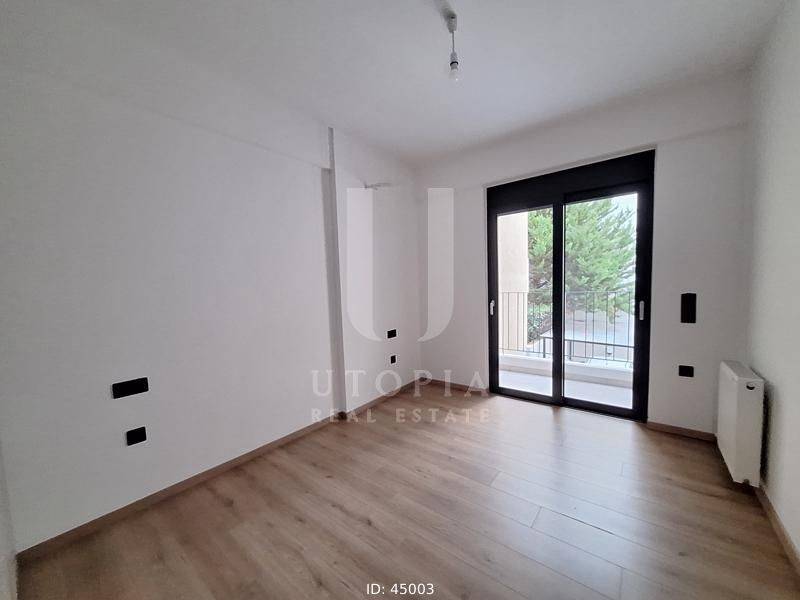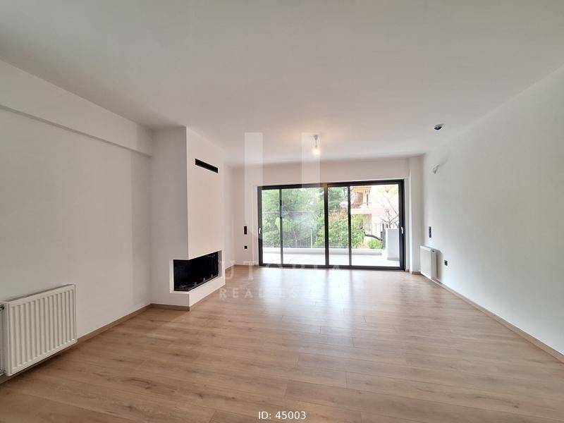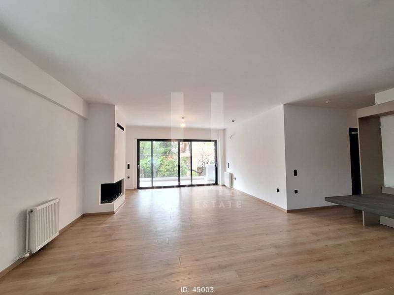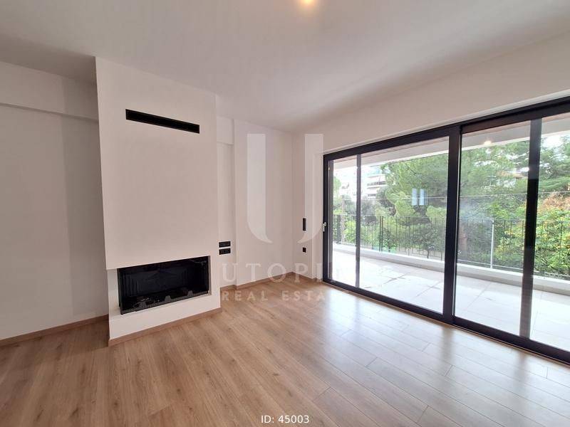 Iraklio (Attica - Northern Suburbs) - Apartment 105sqm bedrooms 3, master bedroom, levels 1, 1st, newly built, year built 2024, energy class A+, living room, kitchen, 2 bathrooms, wc, heating type: autonomous (natural gas), air condition, parking ground floor, quiet, dual aspect apartment, luminous, frontage, storage space, solar heater, external thermal insulation, fireplace, balconies, elevator, thermal shut-off frames, double glazed windows, door screen, wood & tile floors, three phase electricity, secure door, alarm, video doorbell, residential zone.