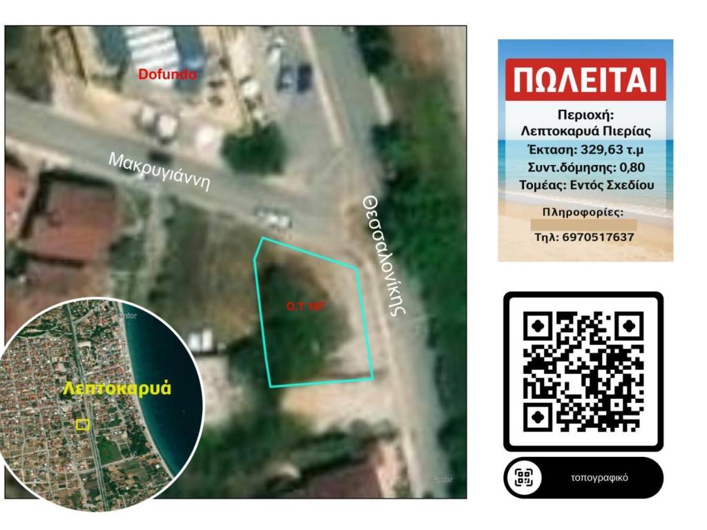 Πωλείται γωνιακό Οικόπεδο Επί των οδών Θεσσαλονίκης και Μακρυγιάννη 323,69 m². Άρτιο και οικοδομήσιμο με συντελεστή δόμησης 0,80