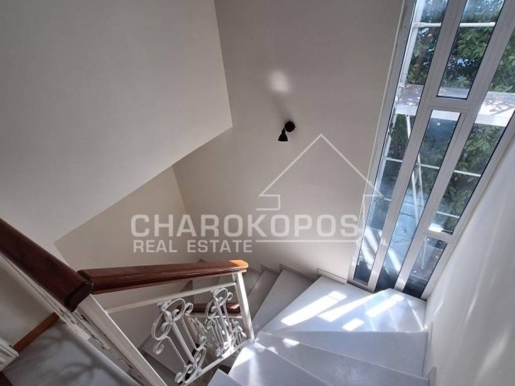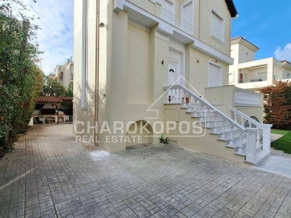 Detached house 330sqm, on a plot of 480sqm, completely reconstracted in 1994. Ground floor 100sqm with living room, dining room and kitchen, 1st floor 95sqm with 3 bedrooms, 2 bathrooms and open office (the 1st bedroom is a master with a bathroom and walk in closet). Attic 15sqm with a bedroom and a bathroom. Semi-basement 120sqm with a playroom, kitchen, bathroom, laundry and storage. It has an individual oil boiler, air conditioners in the bedrooms, solar panels, aluminum frames with double glazing, screens, electric shutters, fireplace, elevator, alarm and built-in electrical appliances. Large garden (with plastic lawn), BBQ and 3 parking spaces. Marble in the reception areas and wooden floors in the bedrooms. The detached house is painted inside and out. It is located in the ravine near Agios Athanasios on a very quiet street.