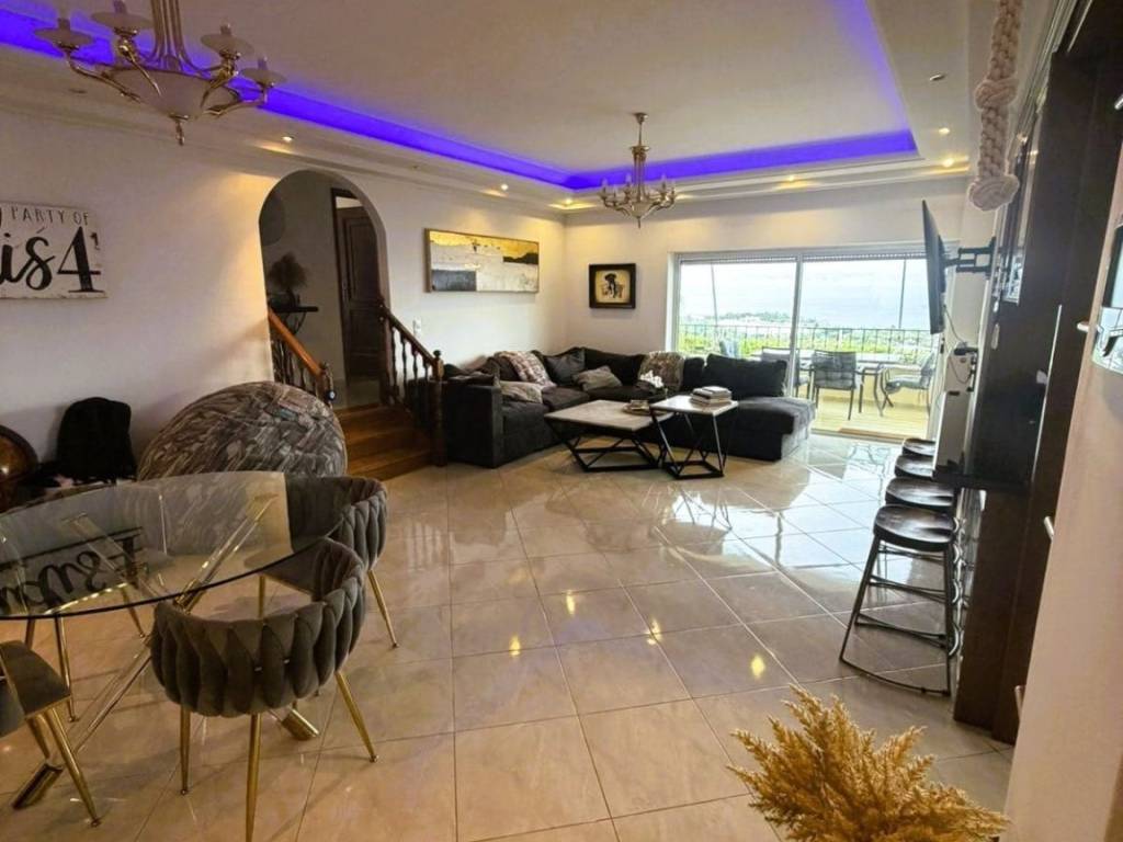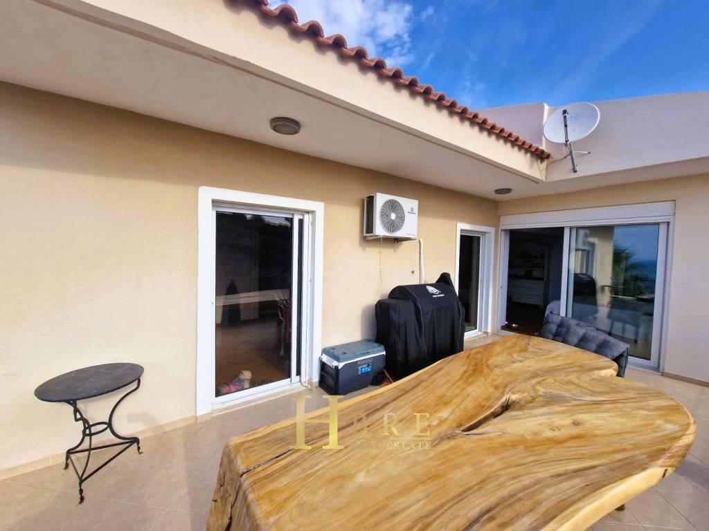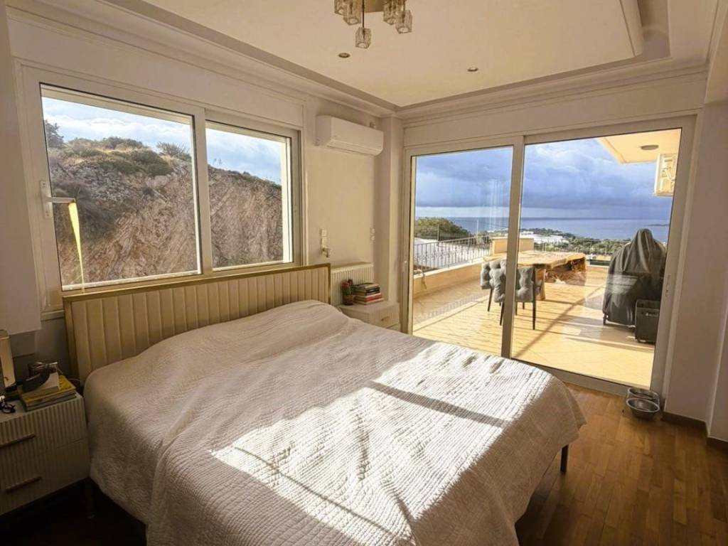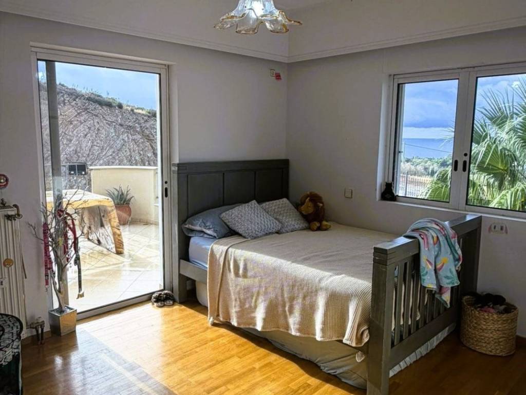 Detached House for Rent with Panoramic Sea View In an exceptional location, just a few steps from the beach, this stunning 160 sq.m. detached house is available for rent. Built in 2006, it is developed on two levels and offers a magnificent panoramic view of the sea, along with spacious and bright living areas. The residence consists of: 3 spacious bedrooms on the first floor 2 bathrooms Large, fully functional kitchen Bright living room with access to large verandas Independent room or office on the upper floor, ideal for remote work or guests Elevator (lift) serving all levels Interior features: Aluminum window frames Tile and wooden flooring Autonomous oil heating system Solar water heater Large, comfortable, and naturally lit interiors Exterior features: Spacious verandas with unobstructed panoramic sea views Beautifully landscaped garden Plenty of open parking spaces Plot size: 800 sq.m. Located in a quiet and privileged area with easy access, this residence combines comfort, functionality, and a breathtaking view. An ideal choice for those seeking a permanent or holiday home by the sea, offering modern amenities and high living quality.