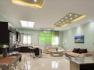 Souda, Center: Newly built airy, very bright Apartment for rent, 100 sq.m. in 700 sq.m. luxury plot, on the ground floor with individual heating (air conditioning). It consists of 2 bedrooms, 1 kitchen-living room, and a bathroom. It is fully furnished, equipped, with electrical appliances, built in 2022, painted and has aluminum frames with double glazing, security door, outside parking space, energy class A+, tiled floors, screens, solar water heater. It is ideal for cohabitation of students or workers or for a family. It is located in a central part of the area near schools, pharmacies, supermarkets, the sea. Price €800 (includes internet). )| Property Code: #E-200239
