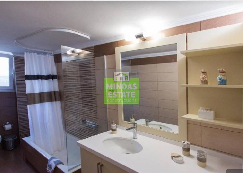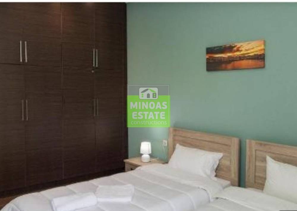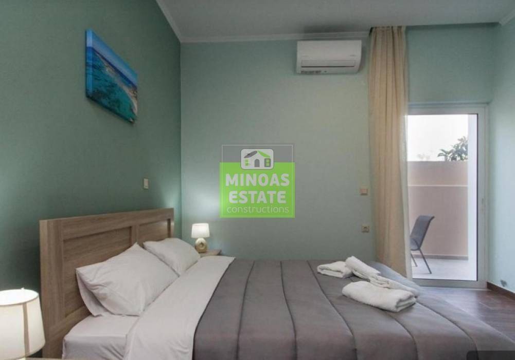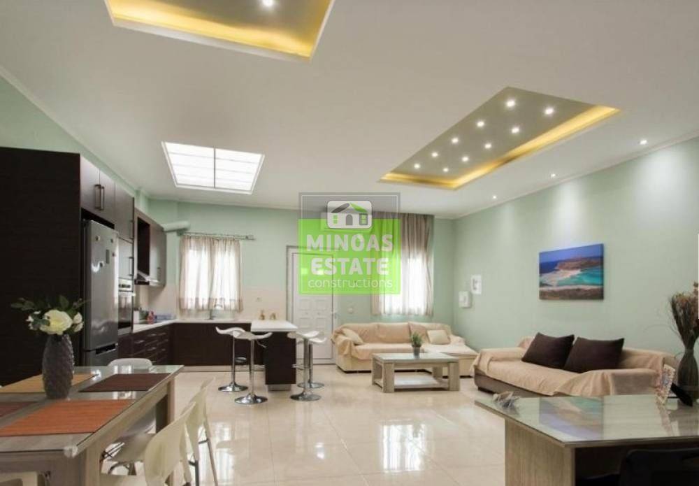 Souda, Center: Newly built airy, very bright Apartment for rent, 100 sq.m. in 700 sq.m. luxury plot, on the ground floor with individual heating (air conditioning). It consists of 2 bedrooms, 1 kitchen-living room, and a bathroom. It is fully furnished, equipped, with electrical appliances, built in 2022, painted and has aluminum frames with double glazing, security door, outside parking space, energy class A+, tiled floors, screens, solar water heater. It is ideal for cohabitation of students or workers or for a family. It is located in a central part of the area near schools, pharmacies, supermarkets, the sea. Price €800 (includes internet). )| Property Code: #E-200239