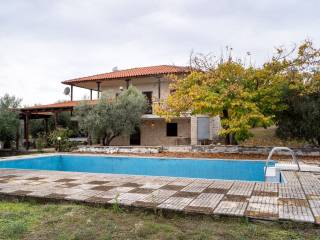 If you are looking for a holiday home in a picturesque village of Halkidiki, near the beautiful beaches of the second peninsula, this is the opportunity you've been waiting for! The two-story house extends over approximately 130 sq.m. It consists of two autonomous floors with a layout suitable either for two families who wish to have their independence or for a combination of a single-family home and investment exploitation. The house can easily be converted, at relatively low cost, into a unified, luxurious single-family home, depending on the needs of the new Owner. The garden, approximately 3,000 sq.m. surrounding the property, hosts a swimming pool, creating an oasis of coolness and relaxation for the summer months, while at the same time offering countless possibilities for further utilization, e.g. creation of BBQ areas, playground, etc., as well as cultivation of vegetables and oil production since it contains 70 olive trees. The property ideally combines the tranquility and privacy offered by its location in Ormylia, a lively traditional village with permanent residents year-round, and immediate access to amenities and the sea. The popular beach of Psakoudia, with its crystal-clear waters, beach bars, and taverns, is just a 10-minute drive away. Additionally, the short distance from other beaches ensures the possibility for daily, different experiences. Here you will feel peace, serenity, coolness, freedom, and carefreeness. Most importantly, for village life enthusiasts, the area retains old values and traditions, offering you a warm and authentic neighborhood! Don't miss the opportunity! Acquire this property now, either as a permanent or holiday home, at an affordable price! Ormylia of Halkidiki is an area with growing investment interest in the real estate market. The area combines authentic Greek culture with beautiful nature, making it an ideal choice for purchasing a holiday home or investing in real estate. With easy access to the beautiful beaches of Metamorfosi and Nikiti, Ormylia is an excellent base for excursions in Halkidiki. The city of Thessaloniki is approximately 75 km away, offering the possibility of quick access to its urban centers and infrastructure. This ideal location combines the tranquility of the countryside with proximity to beaches and attractions, making Ormylia an emerging investment destination for real estate.