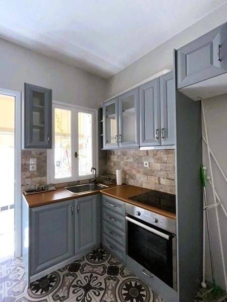Piraeus, Freattyda - Apartment 64sqm bedrooms 2, levels 1, 1st, renovated, year built 1965, renovation year 2025, energy class D, living room, kitchen, bathroom, heating type: individual unit (natural gas), air condition, quiet, dual aspect apartment, luminous, frontage, painted, tents, elevator, loft storage, aluminum frames, double glazed windows, wood & mosaic floors, separate kitchen, secure door, residential zone.