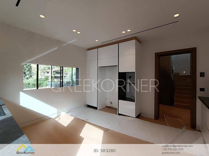 Ekali (Attica - Northern Suburbs) - Independent Maisonette 400sqm plot 1100sqm, unfurnished, bedrooms 3, master bedrooms 3, levels 3, basement - ground floor - 1st, newly built, year built 2025, energy class A, living room, hall, kitchen, 5 bathrooms, wc, heating type: autonomous (heat pump), air condition, parking covered,3+, quiet, dual aspect apartment, luminous, frontage, painted, drop ceiling, electric roller shutters, storage space, solar heater, boiler, external thermal insulation, fireplace, balconies, elevator, garden, thermal shut-off frames, double glazed windows, door screen, wood & tile floors, separate kitchen, without common charges, three phase electricity, night electricity discount rate, secure door, alarm, video doorbell, luxurious, under floor heating, private pool, internal staircase, smart home, playroom, cloakroom, service room, ev charger, internet, internal elevator, laundry room, residential zone, access from asphalt.