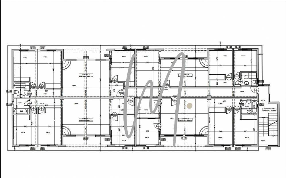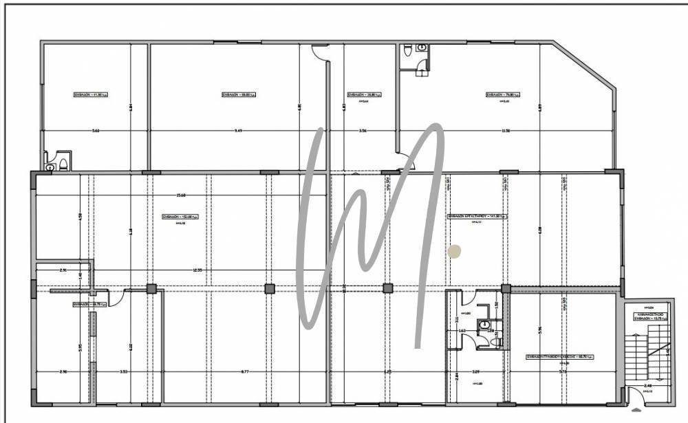 Ισόγειο - Εργοστάσιο - Επιφ. ~ 440 τμ (συν ένα πατάρι ~ 22 τμ) Α όροφος - Επαγγελματική αποθήκη - Επιφ. ~ 425 τμ Β όροφος - Κατοικίες - Επιφ. ~425 τμ     Στο ισόγειο εκτός από το κυρίως περίγραμμα του κτηρίου, υπάρχουν και οι βοηθητικοί χώροι που φαίνονται στο τοπογραφικό και είναι χαρακτηρισμένοι ως  1. Αποθήκες πίσω από κτήριο με επιφάνεια  ~215 τμ  και  2. υπόλοιπα στέγαστρα με συνολική επιφάνεια ~ 370 τμ
