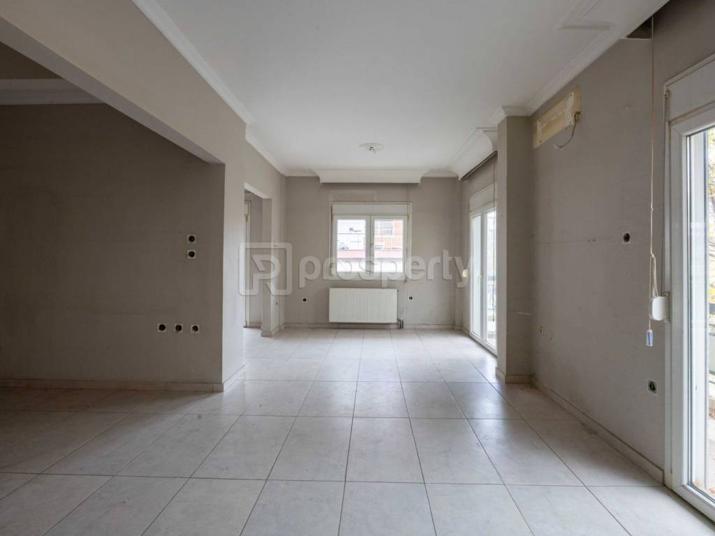 Apartment of 96 sq.m. net area and 110 sq.m. gross area, located on the elevated first floor of a corner building constructed in 1979 in Eleftherio Kordelio. The internal layout includes two bedrooms, a living room, an open-plan sitting and kitchen area, a bathroom and a wc. The kitchen and the wc are in a semi-finished state, allowing for customized completion. The apartment features synthetic double-glazed window frames and heating through a natural-gas boiler. Its corner positioning provides light from two sides and a practical interior arrangement. Situated in a central part of Eleftherio Kordelio with direct access to local services and everyday amenities, it is suitable for families seeking a functional residence in an urban setting. https://marketplace.theprosperty.com/listings/14844 ☎️ 210 6812500.
