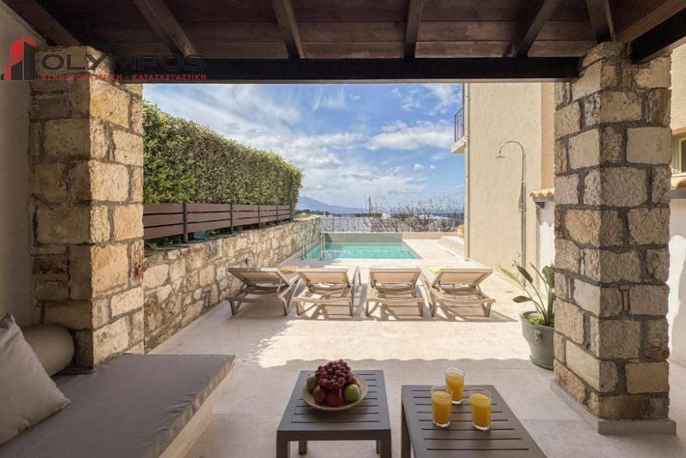 A villa of 100 sq.m., in a plot of 400 sq.m. with a pool and unobstructed sea and sunset view, in Ravdoucha village of Chania.