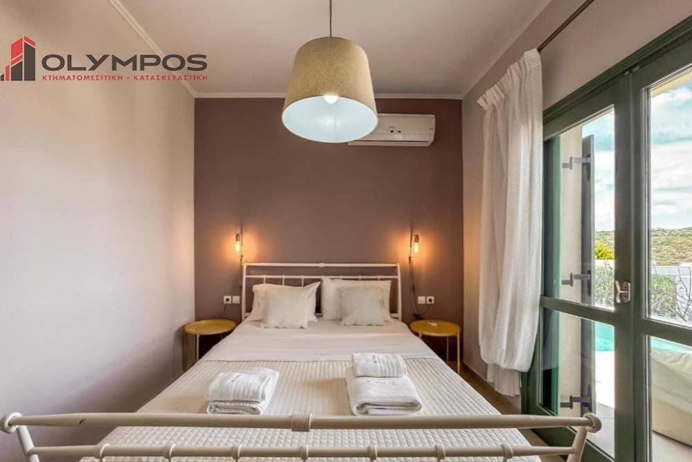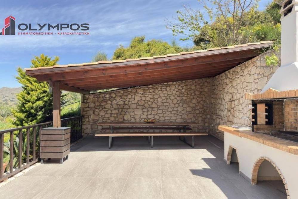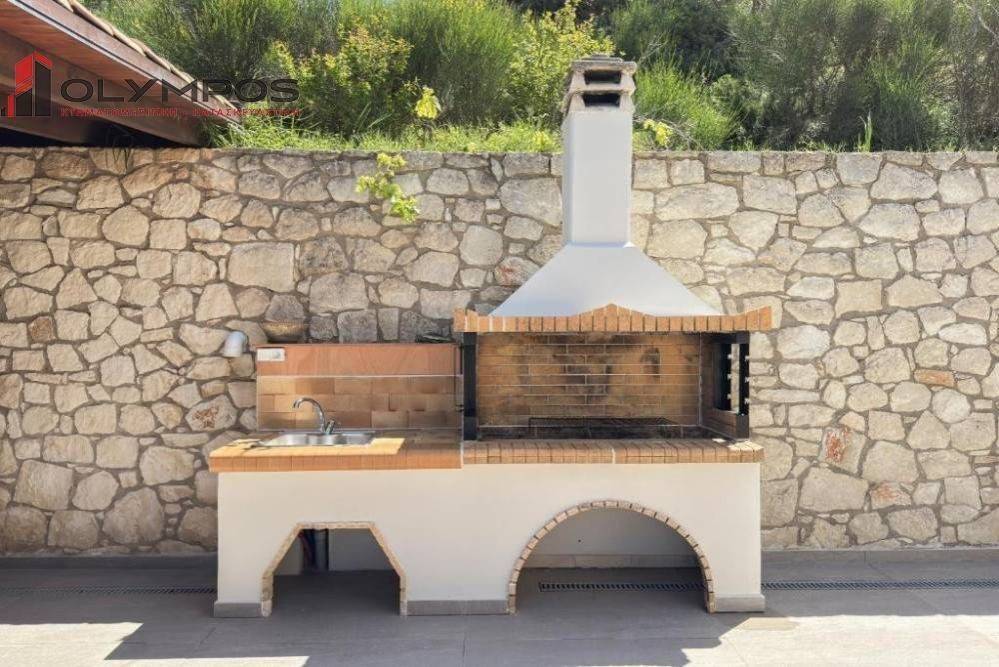 The villa is two-floored and consists of 3 bedrooms, 3 bathrooms, open plan living room-kitchen, a storage space, spacious terraces with sea view, a pool with sunbathing area, a covered dining room with BBQ and traditional oven and parking space.