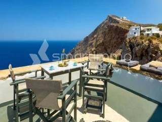 Im Herzen des historischen Kastro von Folegandros befindet sich dieses außergewöhnliche Klippenhaus mit 95 m² Wohnfläche – eine seltene Gelegenheit, ein Anwesen zu erwerben, das kykladisches Erbe, atemberaubende Ausblicke und modernen Wohnkomfort vereint. Ursprünglich im 13. Jahrhundert von den Venezianern erbaut und mit höchstem Respekt für die traditionelle Handwerkskunst restauriert, gehört es zu den wenigen erhaltenen Häusern, die dramatisch über dem Ägäischen Meer thronen. Das Haus erstreckt sich über zwei Ebenen und verfügt über eine Innentreppe, authentische Natursteinmauern, Gewölbedecken, Rundbogenfenster und traditionelle Holzelemente, die eine Atmosphäre von zeitloser Ruhe und Eleganz schaffen. Zwei große, zum Meer ausgerichtete Terrassen bieten einen unvergleichlichen Panoramablick über die Ägäis – ideal zum Essen, Entspannen und Genießen der berühmten Sonnenuntergänge der Insel. Ein zusätzlicher Balkon mit Blick auf das Dorf verbindet Sie direkt mit dem pulsierenden Leben der Chora. Das Anwesen ist vollständig mit modernen Wasser- und Stromanschlüssen ausgestattet, bietet hervorragende Belüftung und angenehm kühle Innenräume. Es ist sofort bezugsfertig und eignet sich sowohl als privater Rückzugsort als auch als Investition mit hohem Renditepotenzial, da es bereits erfolgreich als Ferienunterkunft betrieben wurde. Dank seiner privilegierten Lage, nur wenige Minuten von der zentralen Platia, Tavernen, Geschäften und den Wegen zu idyllischen Stränden entfernt, verbindet es Privatsphäre, Authentizität und höchsten Wohnkomfort.