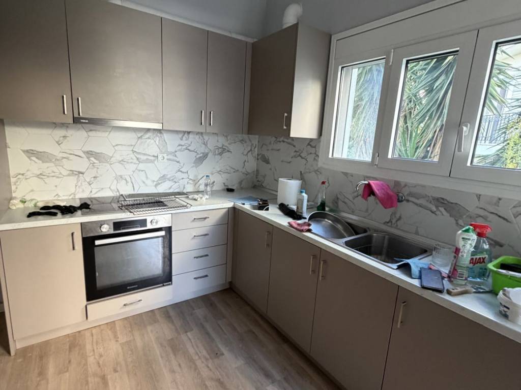 A renovated 100 sq.m. apartment is available for rent on the first floor in the center of Argyroupoli. Built in 1965 and fully renovated in 2023, it offers a modern and comfortable living space. It consists of two bedrooms, one bathroom, one WC, a kitchen and a living room. The property features autonomous electric heating, air conditioning, a solar water heater, aluminum double-glazed windows, Energy Certificate Class C and wooden flooring, adding warmth and elegance to the interior. It is front-facing, bright, airy, sunlit and cross-ventilated, with an east–west orientation and urban views. Ideally located near the metro, public transport, shops and dining options, it ensures excellent everyday convenience. Additional features include awnings and a security door. The rental price is €700 per month. Rental Price: €700/month The listed location is indicative. For more information or to schedule a viewing, please contact KOSMOS REAL ESTATE. Property Manager: Pantelis – +30 6986870912 Email: padelis@kosmosrealestate.gr Website: www.kosmosrealestate.gr