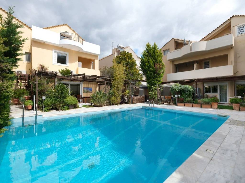 In a complex of five maisonettes with a large shared swimming pool, this 236 sq.m. maisonette is for sale in a very quiet neighborhood of Marousi, just a short distance from the local market. The maisonette consists of four levels: Semi-basement: A fully equipped kitchen, one bathroom, a storage room, and a living area with a fireplace. This level provides direct access to the garage. Ground floor: The main entrance opens into a spacious living and dining area with a fireplace and a guest WC. This level offers direct access to the garden and the shared swimming pool of the complex. First floor: Three spacious bedrooms with large balconies and one bathroom. Attic: One bedroom, one bathroom, a living area with a fireplace, and large terraces with unobstructed views. All levels are connected by an elevator, ensuring convenience, even for older residents. The property features autonomous natural gas heating on all floors, an alarm system, two parking spaces in a closed garage, and a storage room. An ideal home for large families looking to live in luxury and practicality. *The property is sold furnished. Unique features: Marousi is the commercial hub of Athens and the base for many multinational companies, businesses, and advertising agencies. This, in turn, means that you will find a plethora of bars, cafes, restaurants, banks, shops, and large shopping centers around. Marousi also hosts some of the most well-known hospitals in Athens, while many international schools are located within close proximity. For wellness and fitness enthusiasts, the Olympic Center (OAKA) is available, as well as Athens' largest green park, Alsos Syggrou, offering a great escape within the city. Accessibility: Marousi is easily accessible by metro and the two suburban stations, as well as by bus. It is very close to the Attiki Odos ring road and the National Road and is only 35 minutes by car from the airport. Investment potential: Marousi has always been attractive to real estate investors due to its favorable location and the development it has seen in recent years, resulting in property prices always offering a good return on investment.