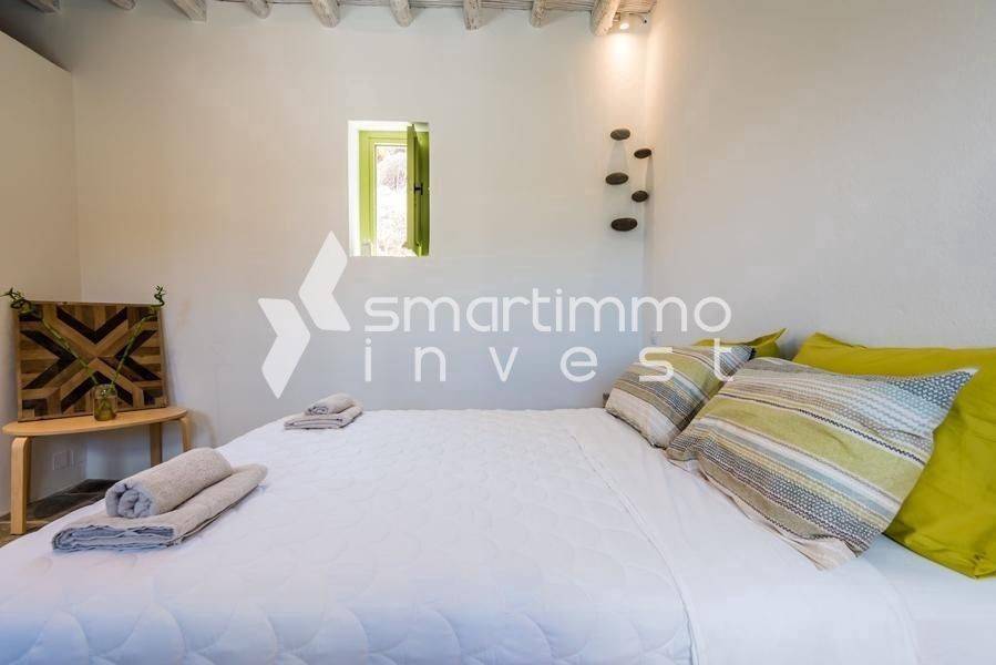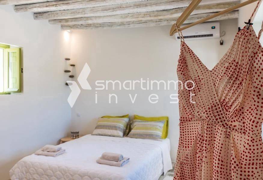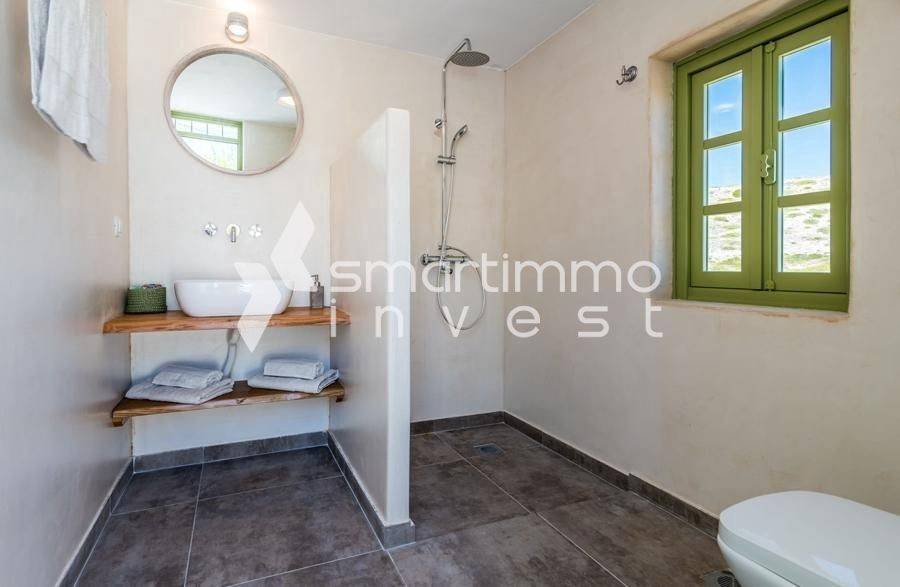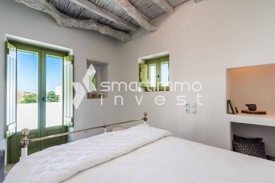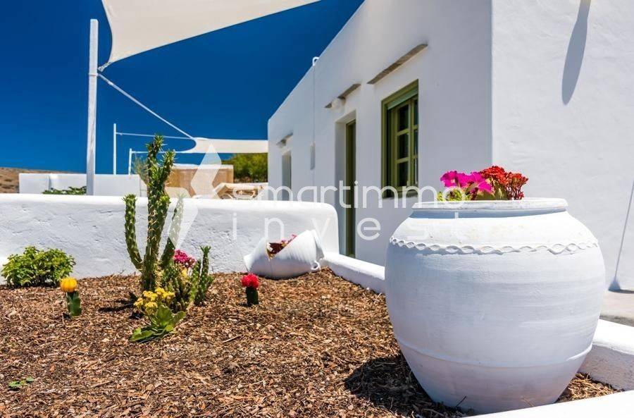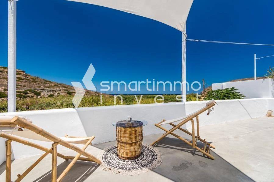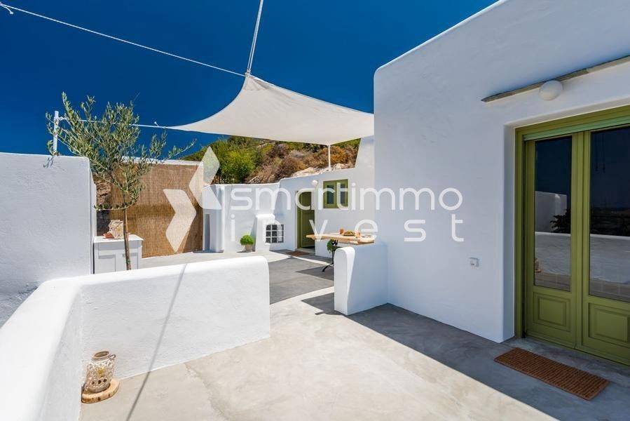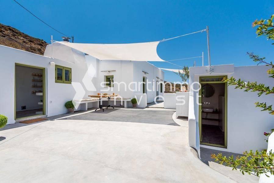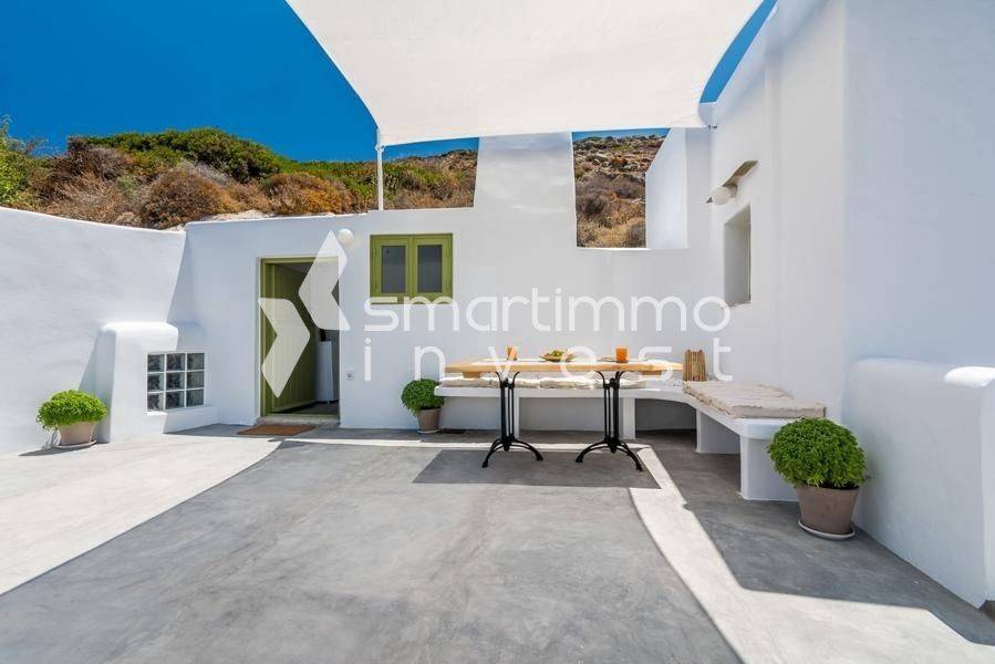 In einer ruhigen und geschützten Lage in Fylakopi auf Milos, nur 2,5 km von Apollonia sowie wenige Minuten vom Flughafen und Hafen entfernt, befindet sich dieses traditionelle Wohnhaus, das ursprünglich 1960 erbaut und teilweise renoviert wurde. Die erhöhte Position bietet einen freien Blick auf das Meer und die umliegende Landschaft, während bekannte Strände wie Papafragas und Sarakiniko leicht erreichbar sind. Das Grundstück umfasst insgesamt 5.207,50 m², wovon 1.452 m² den Hauptwohn- und Hofbereich bilden, während der restliche Teil für landwirtschaftliche Nutzung geeignet ist. Die Fläche unterhalb des Hauses beträgt 3.755,50 m² und schafft ein großzügiges, naturnahes Wohnumfeld mit viel Privatsphäre. Die gesamte bebaute Fläche von 153 m² umfasst ein Haupthaus von 42 m², eine 12 m² große Küche, einen 26 m² großen Untergeschossraum, ein 9 m² großes Taubenhaus, ein 5 m² großes Außenbad sowie 60 m² Höfe. Die Gesamtfläche aller Gebäude beträgt 94 m². Die traditionelle Steinbauweise und die sorgfältig gestaltete Raumaufteilung verleihen dem Anwesen einen authentischen Charakter, während die Außenbereiche ideale Bedingungen für Ruhe, Gastfreundschaft oder touristische Nutzung schaffen. Das Anwesen eignet sich sowohl als dauerhaftes Wohnhaus als auch als Ferienresidenz und bietet aufgrund der hohen Nachfrage in der Region hervorragendes Investitionspotenzial. Das großzügige Grundstück eröffnet zudem Möglichkeiten landwirtschaftlicher Nutzung.