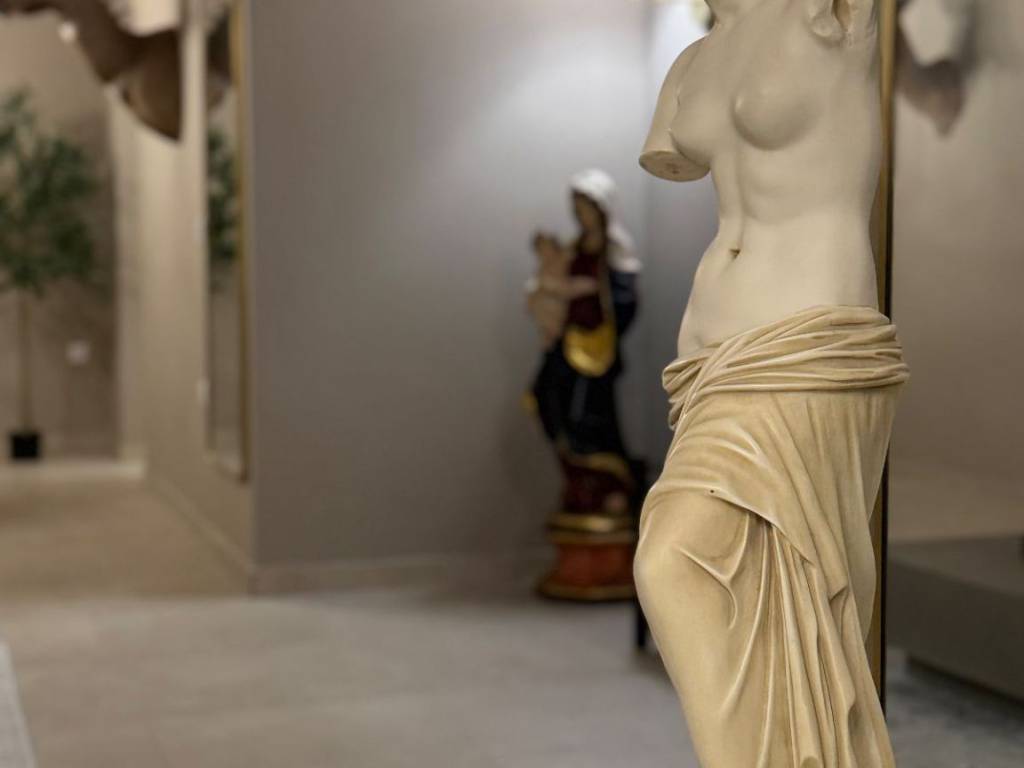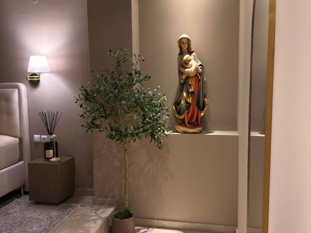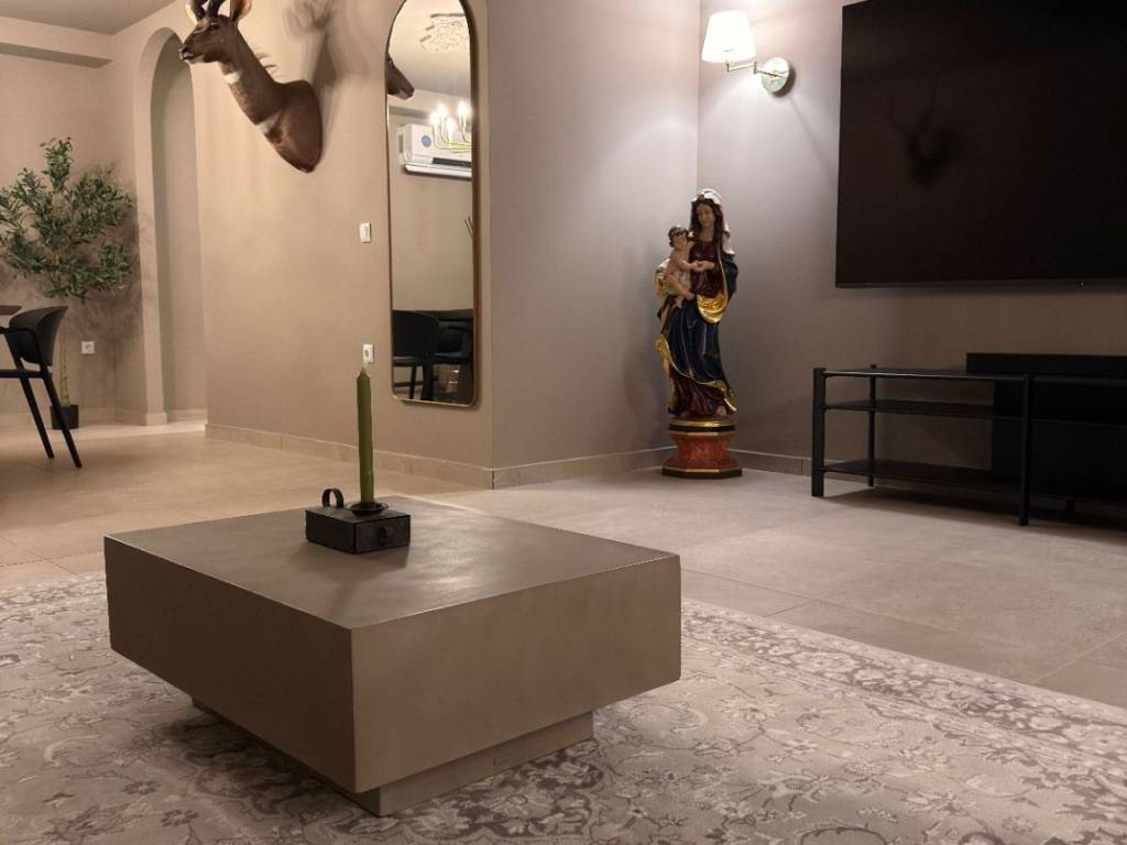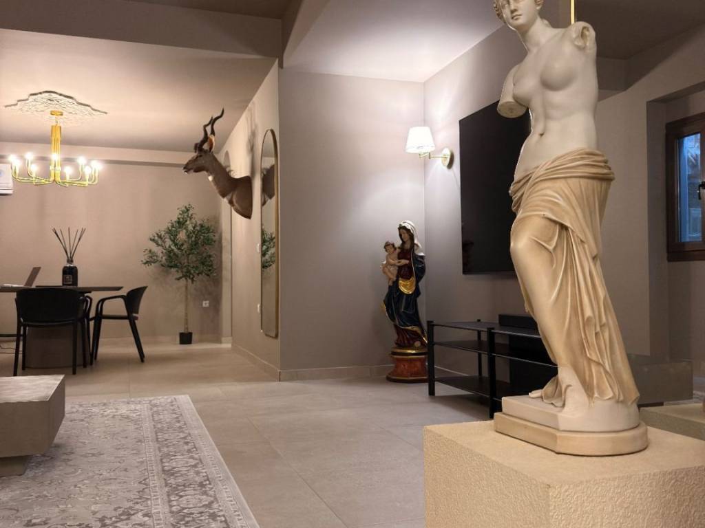 ‼️ Only clients and real estate agents with actual prospective clients are welcome. We do not accept inquiries from agents asking to upload or repost this listing on their own websites.‼️ This newly renovated basement residence redefines luxury living in the heart of Thessaloniki. Located directly on Egnatia Street, the apartment combines boutique-hotel elegance with the privacy and calm of a secluded retreat. High ceilings, handcrafted ceiling rosettes, gold chandeliers, and large Italian tiles create an atmosphere more reminiscent of a private gallery than a typical basement space. Despite being a lower-ground apartment, the space feels surprisingly bright and open thanks to three large windows and a custom-engineered fresh-air ventilation system. Premium air-conditioning units provide continuous fresh airflow, a rare feature even in high-end properties. The result is exceptional air quality and a pleasant indoor climate all year round. The spacious main area flows seamlessly into a sculptural black matte designer kitchen, offering generous storage and a clean, architectural look. Throughout the apartment, curated elements such as classical statues, warm lighting, arched openings and soft neutral tones enhance the refined aesthetic. Every detail—from textures to lighting—has been selected to elevate the ambiance. The bathroom continues the same design language, featuring floor-to-ceiling Italian stone tiles, a walk-in rainfall shower, and minimalist fixtures that give the space a spa-like feel. Overall, this apartment is a rare find: a luxurious, meticulously crafted living space in one of Thessaloniki’s most central and desirable locations—combining style, comfort, and architectural sophistication in a way that is truly unique on the market.