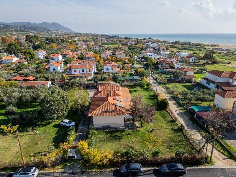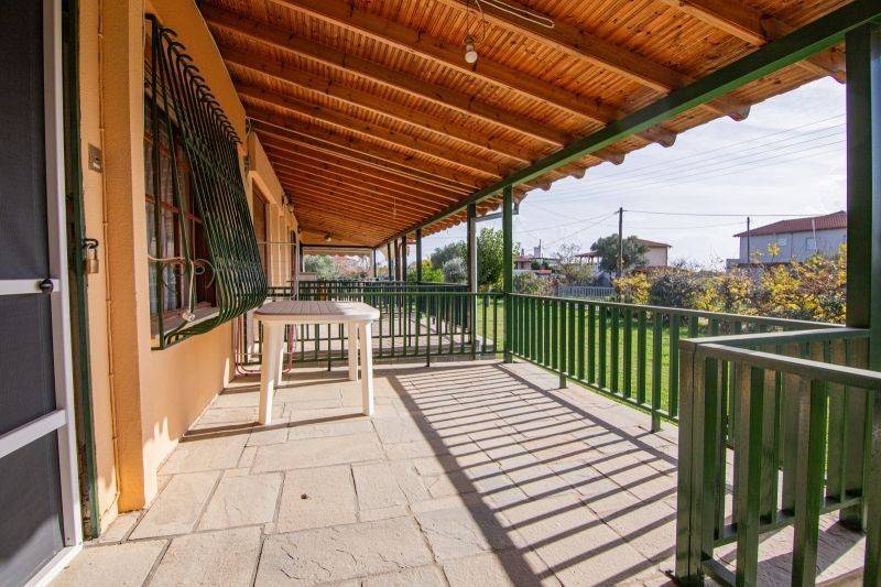 House of 50sq.m on a parcel of 624 sq.m in Kariani Beach, Kavala. It consists of an open plan living room with kitchen and fireplace, two bedrooms and a bathroom. It has synthetic frames with mosquito nets and protective bars, an air conditioner and solar water heater. In addition, there is a 50 sq.m. underground storage area that can be configured according to the needs of the new owner. The spacious veranda offers moments of relaxation. The external surrounding area is beautifully landscaped with the green element dominating. The house is south oriented and is 200 meters away from the sandy coast of Kariani Beach with the famous beach bars and restaurants. The famous center of Ofrinio Beach is only 4 km away and offers various ways of entertainment for every visitor. Year of construction: 1980