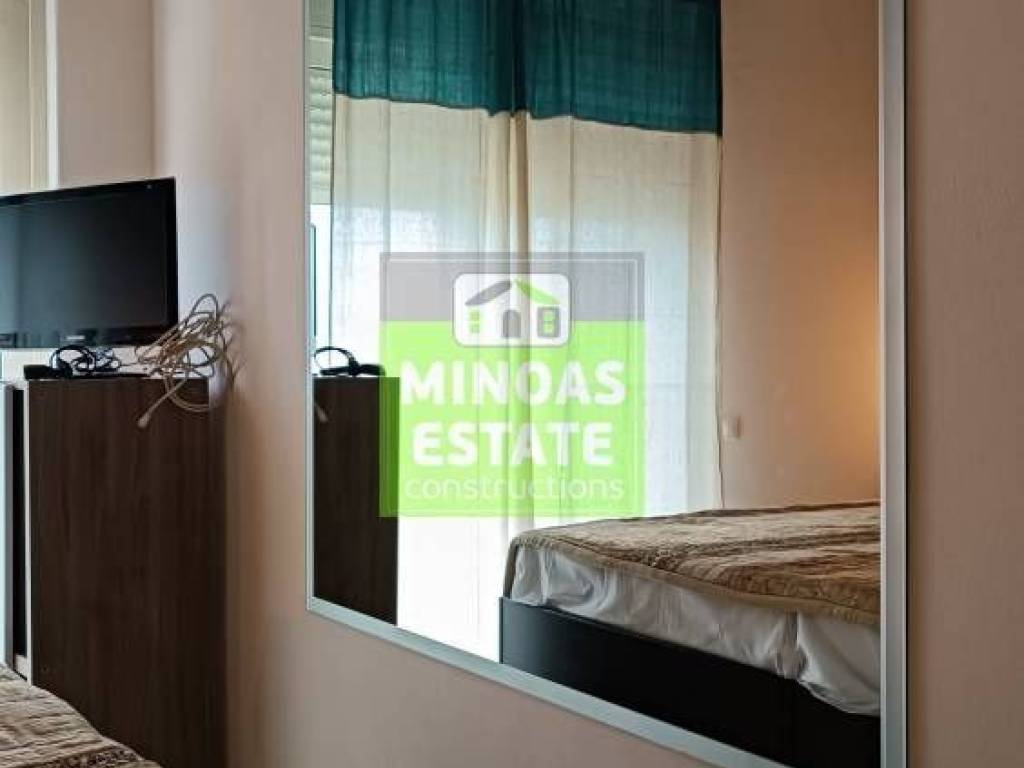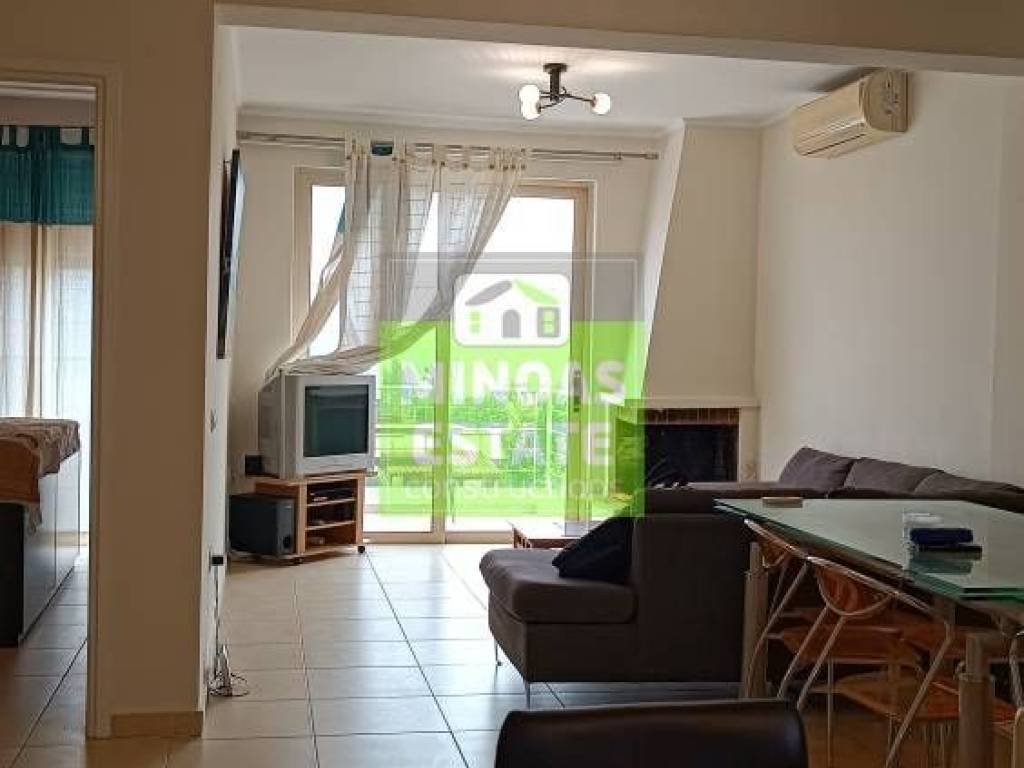 Akrotiri, Sternes: For rent very bright Apartment 85 sq.m. on the 1st floor with underfloor heating, air conditioning and a fireplace. It is located in a very nice place, in a residential complex with a shared swimming pool. It consists of 2 bedrooms, 1 kitchen-living room, and a bathroom. It is fully furnished, equipped, with electrical appliances, built in 2007, painted and has a nice view, BBQ, aluminum frames with double glazing, 3 outside parking spaces, tile floors, screens, cable TV, solar water heater, satellite dish, internet. It is ideal for families or working people and pets are allowed. Price 700€ (the price includes utilities and pool costs) | Property Code: #E-15011
