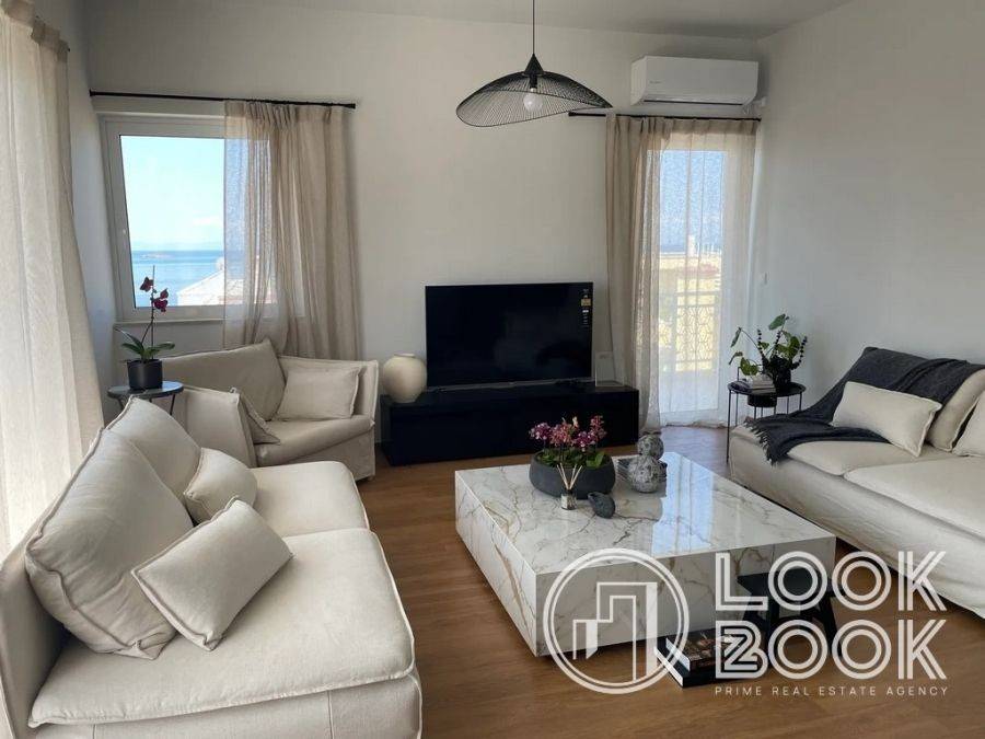 Located in Kato Voula, on the 3rd floor, a neat and stylish 95 sq m apartment, fully renovated in 2023 and in amazing condition. The property is furnished. It consists of a comfortable living room, functional kitchen, two bedrooms and two bathrooms. It has access to a private roof garden on the terrace, where there is an additional 10 sq m space that could be an office, room or playroom, with its own WC, as well as a landscaped area with BBQ and dining area, ideal for relaxation or hospitality. The apartment is freshly painted, with aluminum frames and double energy glazing and laminate floors. It has a south orientation and a beautiful sea view, while it is only 50 meters from the beach. Its location offers direct access to trams, public transport, squares, church, shops, super market and entertainment venues. A particularly privileged property, in one of the most sought-after areas of Voula. Price: €3,500, Code: 21541, Look2Book Tel: 2108940006,6944991499, e-mail: info@look2book.gr, website: www.look2book.gr