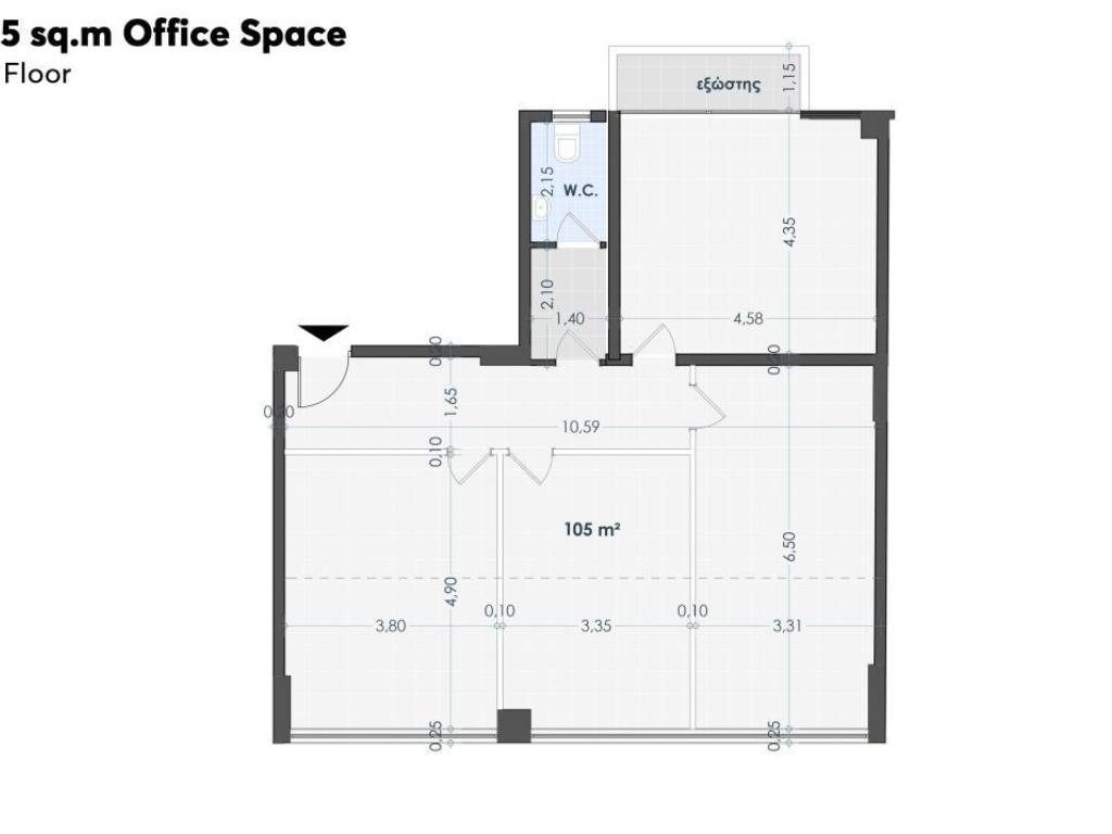 Διαμέρισμα 1ου ορόφου, εμβαδού 105τ.μ. & μία θέση στάθμευσης υπογείου ορόφου. Χρησιμοποιείται ως επαγγελματική στέγη (γραφεία)