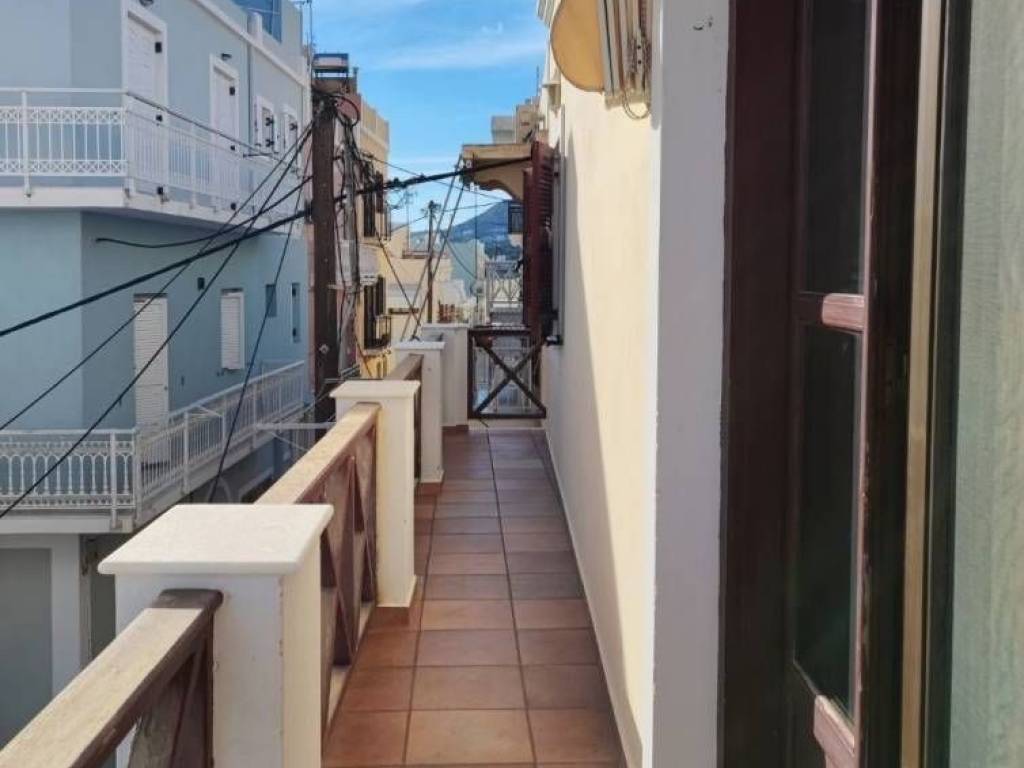 Plakes, Ermoupolis: Apartment for rent 42 sq.m. on the 1st floor for ong term lease. It consists of 1 bedroom, 1 open plan space with a kitchen and a living room and 1 bathroom. It is fully furnished, with electrical appliances, air conditioner, electrical heater in the bedroom and has wooden frames with double glazing and screens. The apartment is airy and bright, while from its balcony that extends around the perimeter it offers views of the sea and the city.