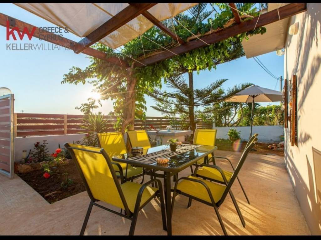 Available 1st November 2026. A fully furnished 100 sq.m. ground-floor detached house is available for rent on a spacious 860 sq.m. plot in the Akrotiri area. The residence consists of two bedrooms, one bathroom, a kitchen, and a comfortable living room, and also includes an open parking space. It was renovated in 2021 and is in very good condition. Heating is individual with a heat pump, and the property features air conditioning, a boiler, aluminum window frames with double glazing, and insect screens, while its energy certificate is rated D. The house offers sea views and a western orientation, and is conveniently located close to the sea, beach, supermarket, and dining options, providing a comfortable and high-quality living experience. Rental price: €1,000. For more information: Vasileios Mantis – Keller Williams Cretan Properties +30 6955 252150 v.mantis@kwgreece.gr kwcp.gr/property/1842654