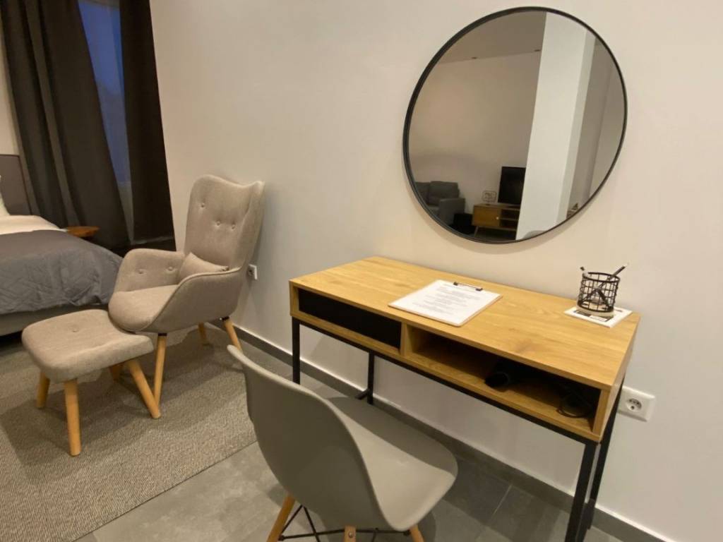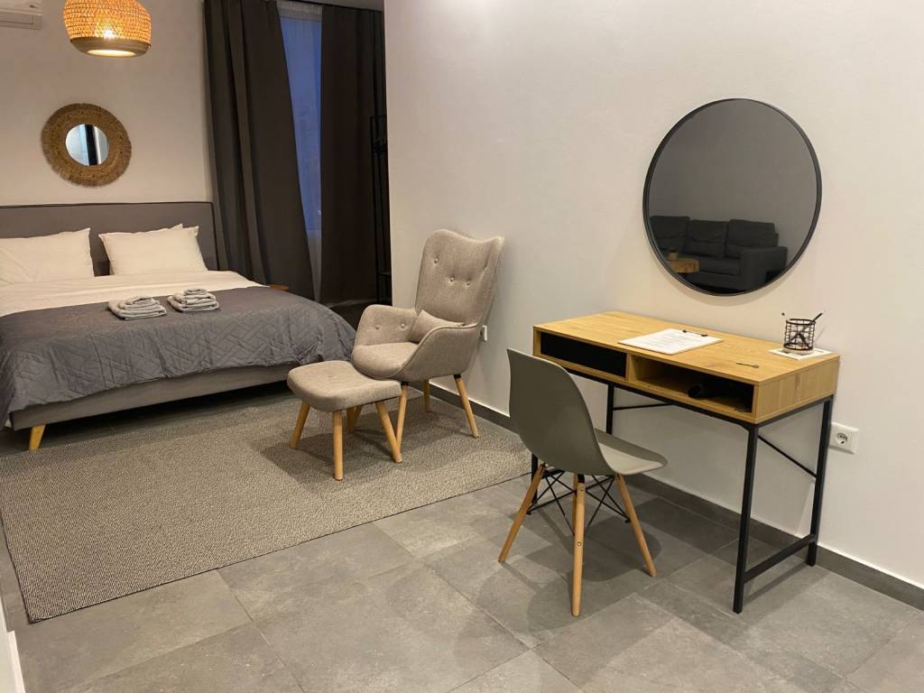 renovated, comfortable and minimal on the first floor of a detached house, just a few meters from the Panormou metro station. The Loft combines modern aesthetics with practicality, offering everything you need for a pleasant stay in Athens. Exclusively for up to two people or a small child together! It is located on a main street among shops in a safe and lively neighborhood of Athens. The open space includes: equipped kitchen, dining room, living room, armchair and sofa, smart tv, double comfortable bed, shower cabin. It is an old refugee renovated detached house on the main street of Panormou and offers a perfect combination of urban convenience with a series of amenities at your disposal. you will find everything you need for a pleasant stay, from restaurants, bars, cafes to banks, pharmacies, markets and hospitals (General Hospital, Red Cross, Henry Dunant, Hippocrates etc.) Conveniently located just 2 minutes walk from Panormou metro station (blue line), easy access to key city attractions such as Syntagma, Monastiraki and the Acropolis within just 4 stops. The same metro line is directly connected to Eleftherios Venizelos Airport (Blue line operates from 5:30 am to 12:30 am). Car parking is relatively easy on the public road, while paid parking at the Cosmos Center is an alternative option at 12 euros per day. The house consists of a single Loft-style space and is quite airy and sunny. The entrance is from the main road and is private, then a staircase leads to the upper floor where you expand the Loft. It has an equipped kitchen (nespresso, toaster, various utensils, kettle, etc.) a comfortable living room with TV and dining area for 4 people, a bathroom with a spacious shower cabin, water heater, separate toilet, a comfortable double bed with USB plugs and sockets on both sides, air conditioning, smart TV, large windows overlooking the street. Available for short-term rental: for more information and daily rental, contact us! No shared or brokerage fees!