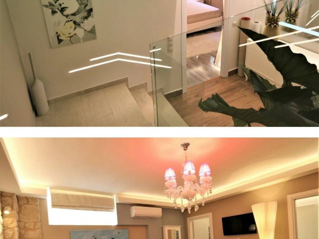 μεζονέτα ισογείου 59τμ με ημιυπογειο 81τμ, πολυτελώς επιπλωμένο και ανακαινισμένο τέντες, κήπος ηλιακός, πατώματα laminate, μαρμαρο πλακάκια