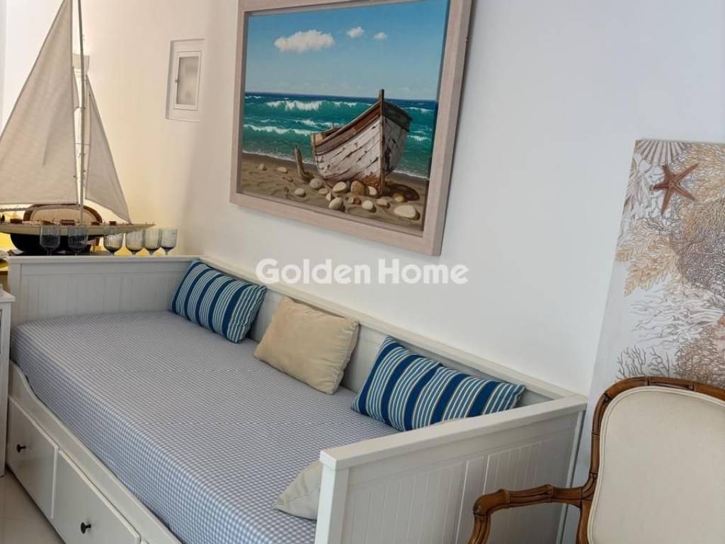 Elegant 40 sq.m. apartment, built in 2017, located in a two-story building just 300 meters from the sea, in an area of exceptional natural beauty with excellent facilities for sports activities. It is close to shops and public transport, offering easy access while maintaining a quiet and pleasant living environment. The property is surrounded by an impressive 500 sq.m. garden with fruit trees and flowering plants, creating a relaxing and nature-filled atmosphere. From the shared rooftop terrace, residents can enjoy breathtaking, unobstructed views of the sea and mountains, perfect for moments of tranquility and enjoyment. For Rent, apartment, Full Bathrooms: 1, Living Area: 40 Sqm, Rooms: 1, Year Built: 2017, Holiday Home, Air Conditioning, View, Balcony, Furnished, Garden, Internal Stairs, Solar Water Heating, Alarm, Floor Number: Ground Floor, Facade, Pets Allowed, Satellite Receiver, Renovated, Bright, Kitchens: 1, Joinery: Aluminium, Floor Type: Marble, Lot Size: 500 Sqm, Accessible For Disabled, Levels: 1, Heating Controller: Autonomous, Heating Medium: Current, Road Type: Asphalt, Zoning: Residential, Neoclassic, Energy Class: B, Orientation: M, Current: Single Phase, Distance Sea: 350
